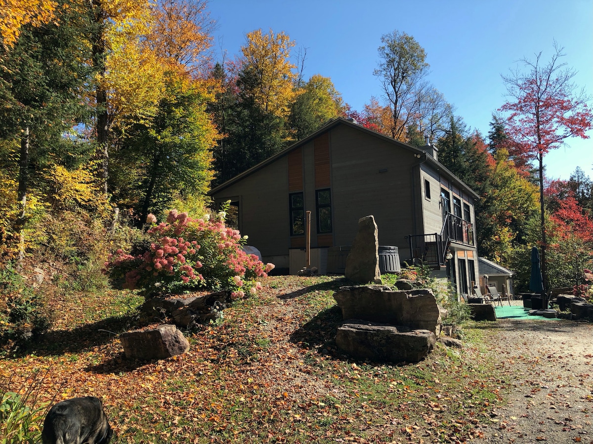 - Résidence de Tourisme: CITQ #281061 -Très confortable/Doté d'un aménagement de qualité/ Plusieurs services + commodités -5 Étoiles: Développement Tourisme Durable -Statut Super Host: Expériences Extraordinaires pour les Voyageurs -Extra Guest: Adulte 50$can// 2 et 17 ans - : 40$can par nuitée À 20 mètres d'un petit lac nourri de sources. Non-motorisé/eau qualité A. Résidence de 4000 pc, concept mitoyenneté, est située à 500 m d'altitude dans le Massif du Mont Kaaikop.