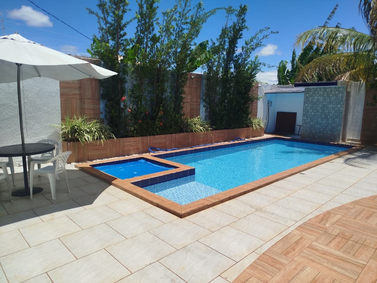 🏡 ¡Te encantarán tus días en Casa Raízes! 🏊♂️ Piscina climatizada con intercambiador de calor (🔥caliente todo el tiempo) 🥩 Gourmet con parrilla y estufa de leña 🍻Cervejeira 📺 TV de 65 pulgadas en la cocina gourmet 🍽️ Mesa grande - 10 asientos 🛏️ 4 cómodas habitaciones con baño con: ❄️ aC 🧖♀️ ropa de cama, toalla, champú, acondicionador, jabón líquido. 🚗 Garaje para 4 autos. 💛 A 15 minutos del centro (6 km) ¡Es el lugar ideal para relajarse y disfrutar de buenos momentos con familiares y amigos y crear recuerdos!