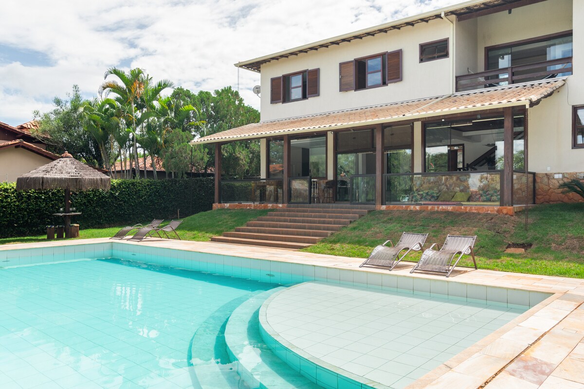 Excelente casa en Lagoa Santa, gran vista, acogedora, ideal para pasar el fin de semana y vacaciones con familiares y amigos. Casa amueblada y equipada, con cámaras de seguridad en el exterior. La ropa de cama NO está incluida. Dejamos una toalla facial y una alfombra en los baños. Para eventos, consulta la tarifa adicional. Piscina con calefacción solar. La cascada de agua y la piscina no están disponibles en el alquiler. Hay Internet, wifi, Sky con Première disponibles. ¡La casa no está en condominio!