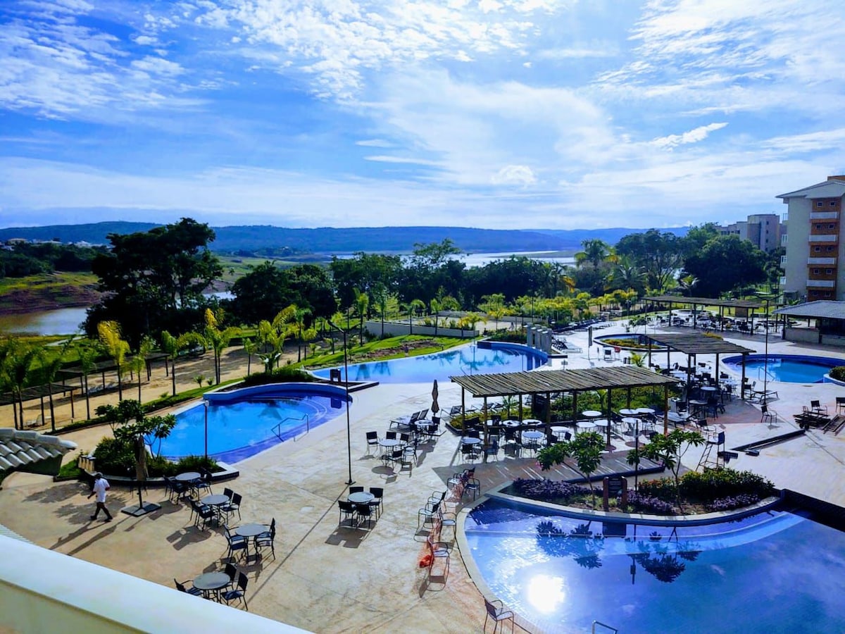 ✨ ¡Momentos únicos en un cómodo apartamento con impresionantes vistas al lago! ✨ 🏞️ A orillas del lago Corumbá, nuestro apartamento es el destino ideal para aquellos que buscan paz, naturaleza y momentos inolvidables.🌿 Con una vista espectacular del amanecer, piscinas relajantes y una estructura de ocio completa, este acogedor refugio es perfecto para recargar energías y crear recuerdos especiales con familiares o amigos.