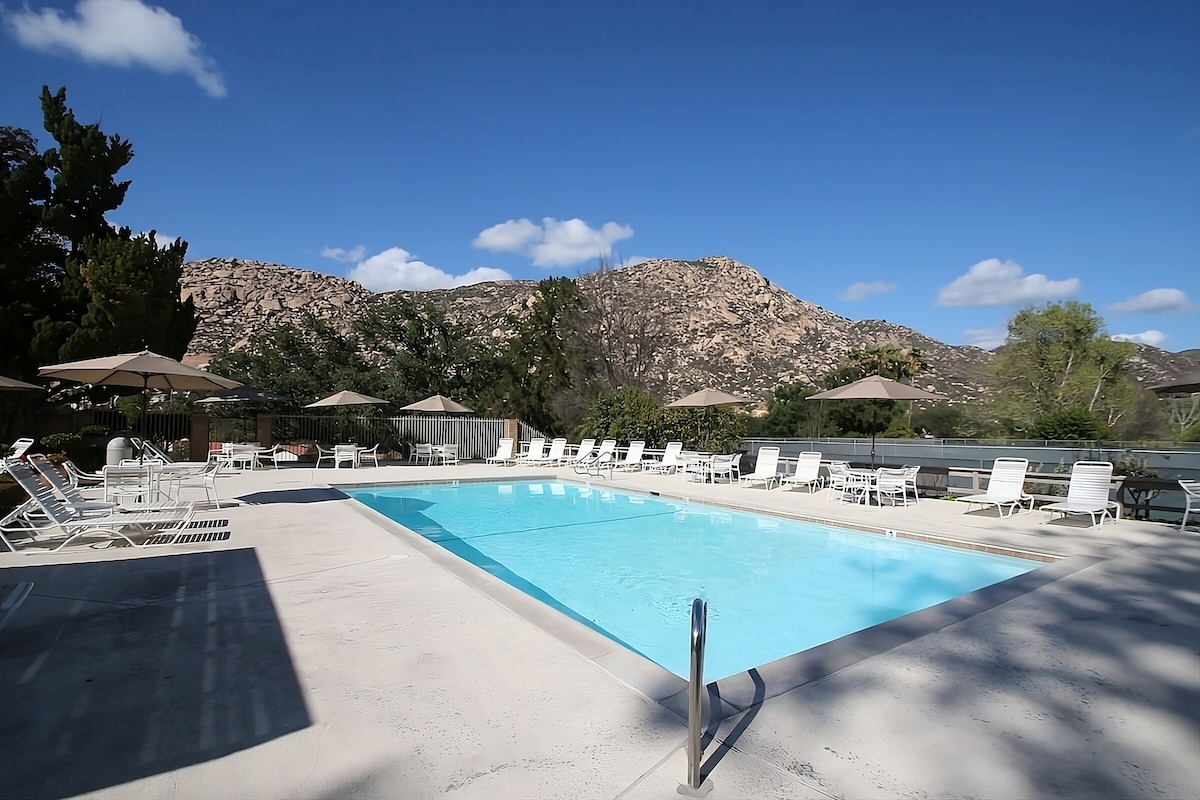 ¡Agradable estancia! Piscina al aire libre, cerca de Barona Speedway