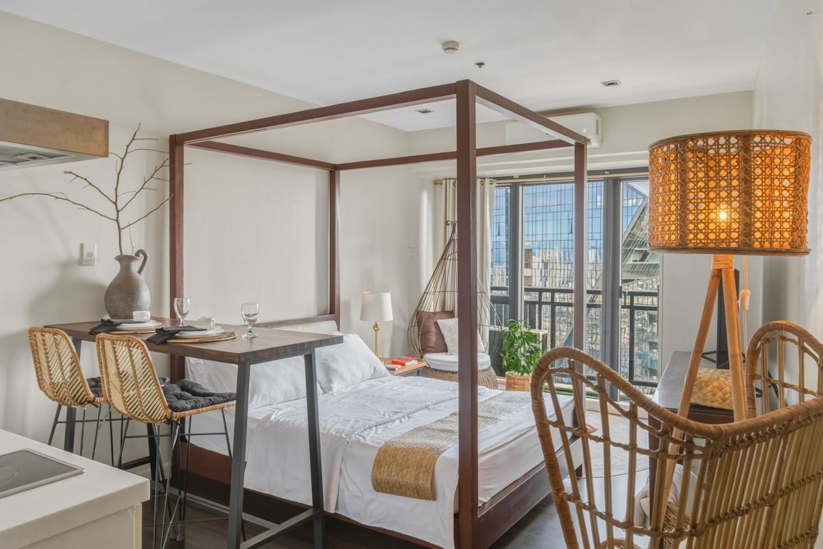 Estudio nativo Boho con balcón y piscina en Makati