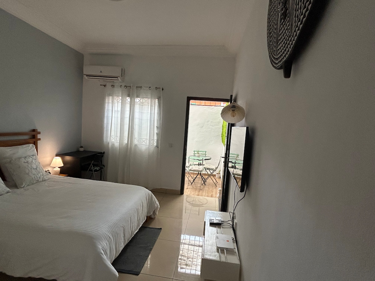Hermoso estudio con cocina equipada, baño, oficina, wifi, aire acondicionado, TV, en una propiedad verde y tranquila, con piscina en Abidjan, Riviera 3. La reserva incluye limpieza semanal gratuita, sábanas, toallas, jabón y lavandería y planchado gratuitos de la ropa de los huéspedes. Es posible que compartas la piscina y el jardín con otros huéspedes. Se puede añadir una cama supletoria para un tercer huésped. La propiedad es tranquila y tiene muchos árboles. Se encuentra a 10 minutos a pie de tiendas y restaurantes.