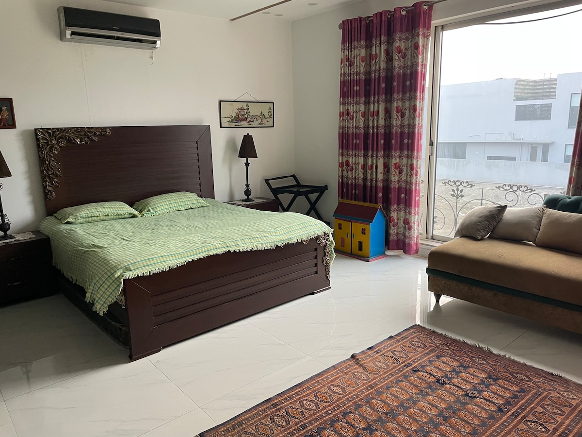 En una ubicación muy céntrica en Lahore, nuestra casa de huéspedes ofrece dos dormitorios, tres baños y un gran espacio de oficina/salón para que lo disfrutes. Con una entrada/entrada y terraza completamente separadas, la propiedad garantiza la privacidad completa para todos nuestros huéspedes. La casa tiene vistas a un amplio y exuberante césped verde que ofrece el lugar perfecto para una taza de té por la tarde. Wifi gratuito, guardias de seguridad 24/7 y un supermercado a poca distancia.