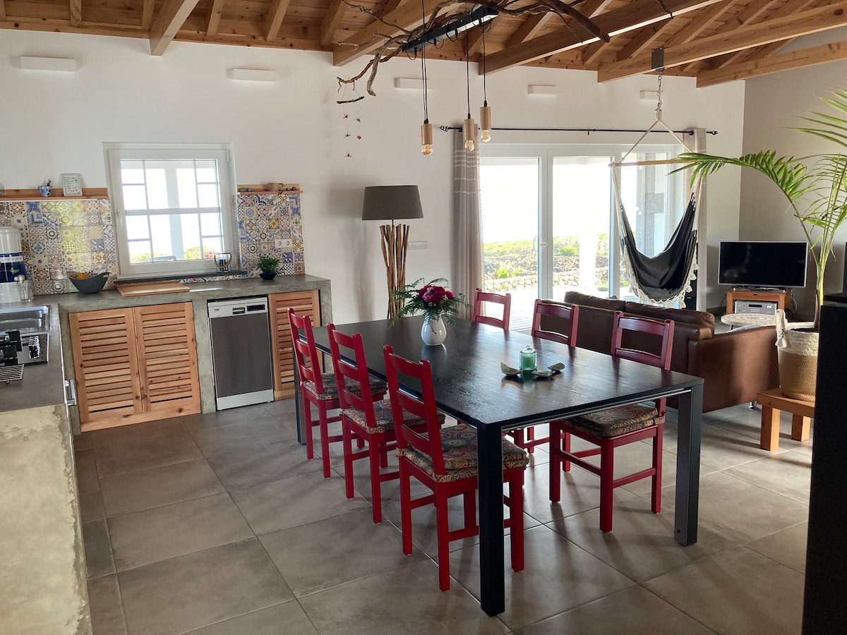 Mucha luz, vistas increíbles sobre el mar y donde se puede ver en su plenitud la isla de São Jorge. ¡Primera línea de mar! Vista a la montaña Pico, el punto más alto de Portugal. Casa muy cómoda, usamos madera de la isla interior. Una muy buena ubicación entre Madalena y São Roque y cerca del aeropuerto. Cocina bien equipada. Relájese, lea, observe el mar, los barcos y la montaña también.