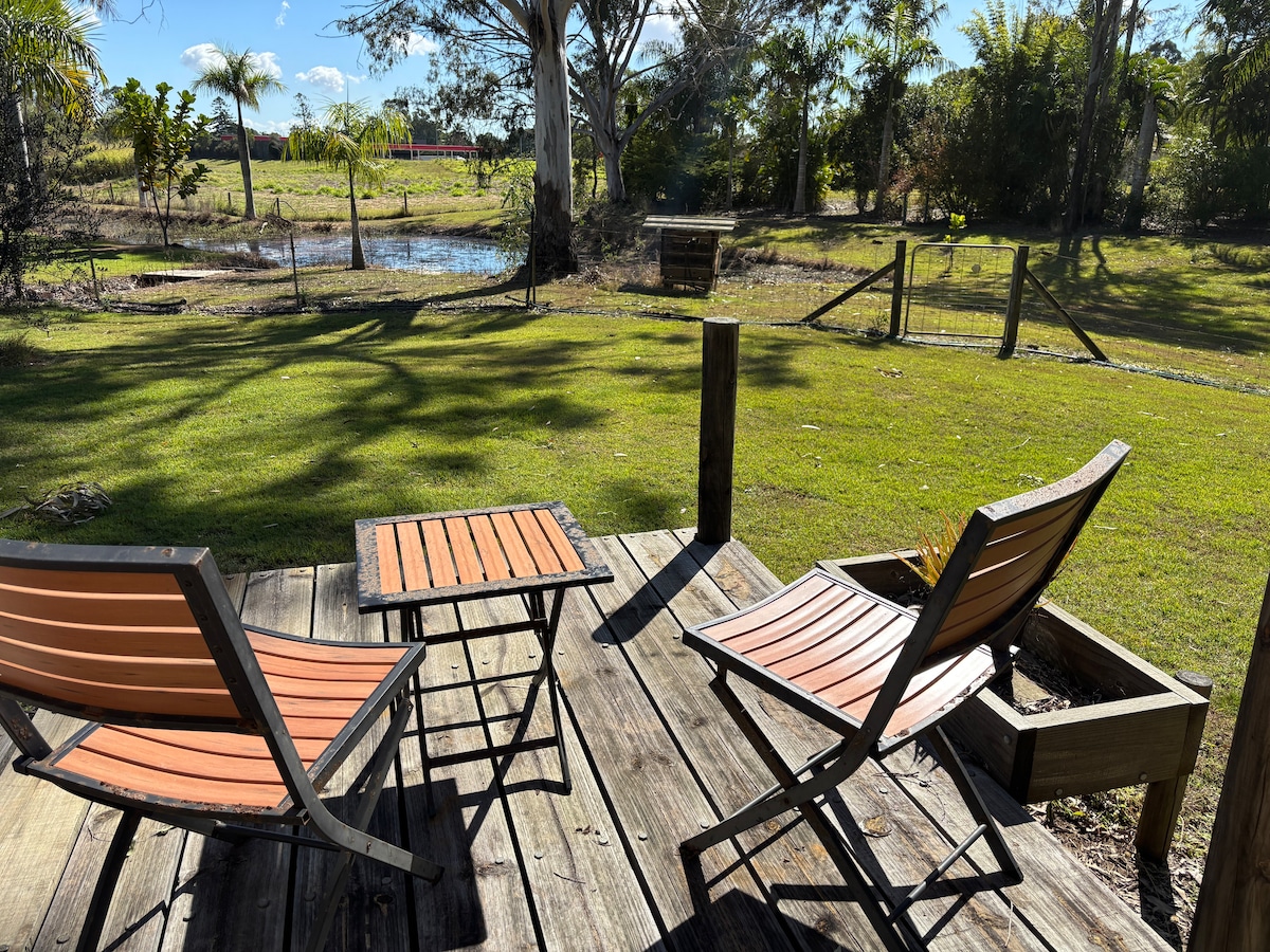 Experimenta un encantador refugio en nuestro acogedor estudio de cobertizos, enclavado en una ciudad tranquila cerca de la autopista Queensland Bruce Highway. Con un entorno rural tranquilo y pollos justo afuera de tu puerta, este espacio ofrece una relajante escapada. Disfruta de una estancia autosuficiente con huevos frescos disponibles previa solicitud. Ten en cuenta que, para la comodidad y la salud de nuestra familia, **NO se permite fumar ni vapear en ningún lugar de la propiedad, además, NO se permiten animales (incluidos los animales de servicio)**, debido a alergias.