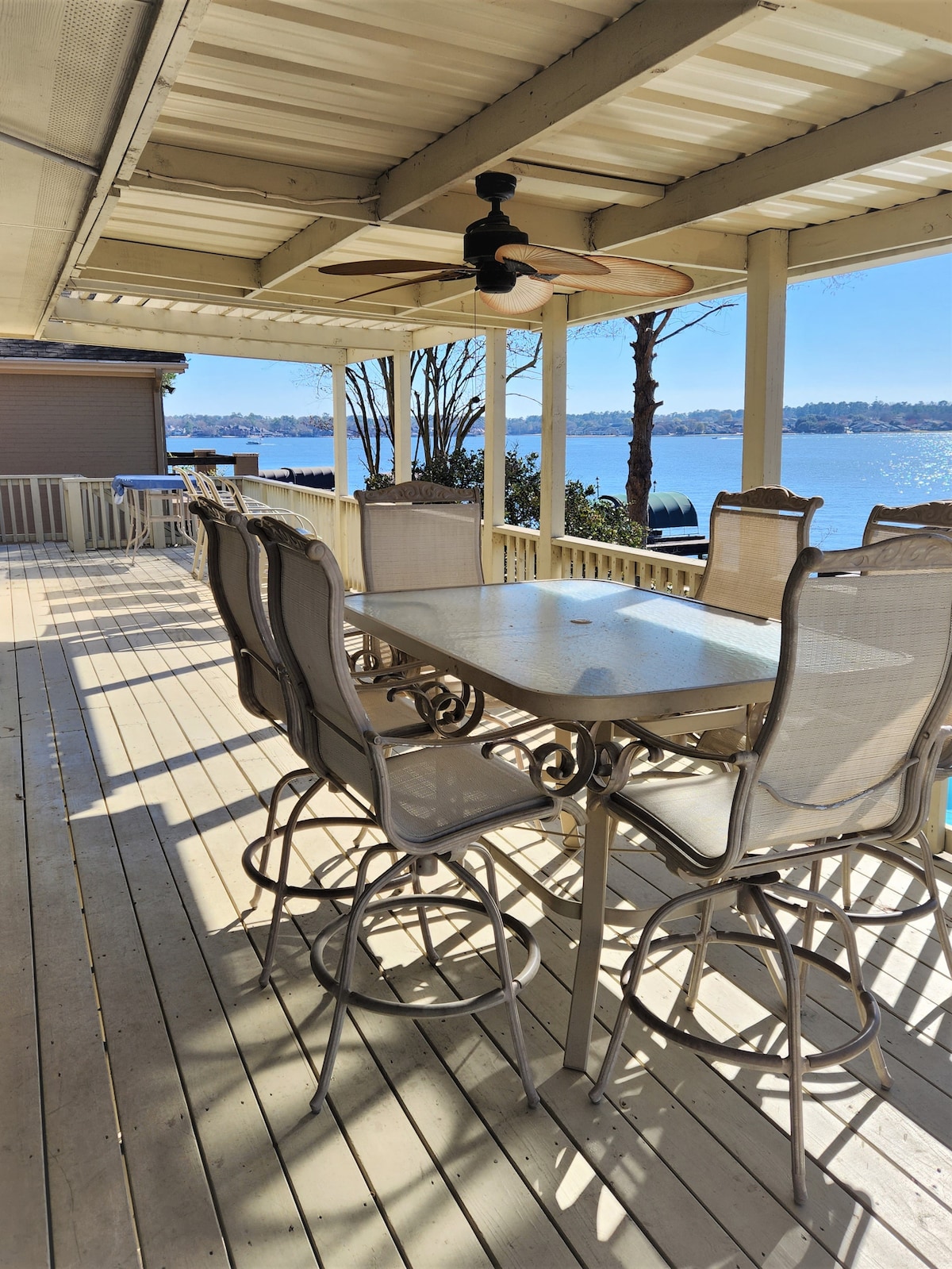 Planifica tu escapada al lago a esta villa contemporánea junto al lago. ¡Esta moderna escapada de lujo se encuentra directamente en el lago Conroe! Ya sea que estés aquí para navegar, pescar o descansar junto a la piscina, este es el lugar perfecto. Esta lujosa casa de 5 dormitorios y 3,5 baños cuenta con una cocina gourmet totalmente equipada, 3 suites principales y dos habitaciones con literas equipadas para alojar cómodamente hasta 16 huéspedes. ¡Disfruta de la hermosa terraza, el balcón extendido, la chimenea y numerosos lugares para descansar con tus amigos!