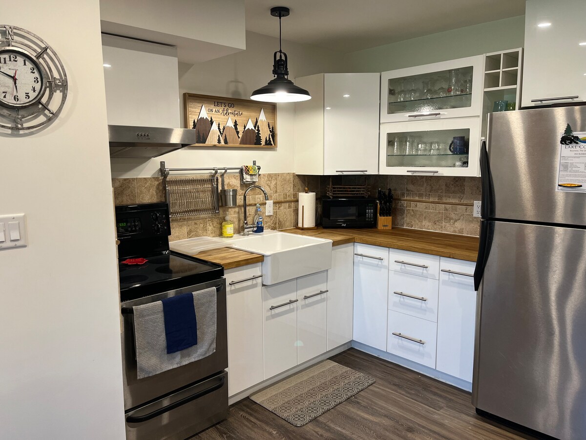 ¡Bienvenido a Lake Country Vacay! Ubicada en la serena comunidad de Lakes, nuestra suite contemporánea de 933 pies cuadrados en la planta baja te invita a relajarte cómodamente con dos dormitorios (incluido uno con una cama tamaño king), un baño completo, una cocina totalmente equipada y servicios bien pensados como calefacción por suelo radiante, persianas automáticas (opacas en los dormitorios), lavandería privada, dos estaciones de trabajo y un sistema de mitigación de radón.
