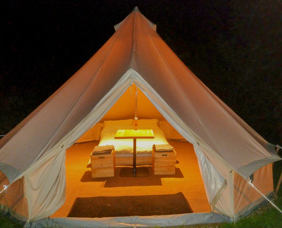 Vuelve a conectar con la naturaleza en esta escapada inolvidable. Nuestros tranquilos terrenos son un soplo de aire fresco. Scar Close se encuentra en una hermosa zona con vistas realmente impresionantes. Nuestras lujosas tiendas de campaña constan de una cama doble y dos camas individuales con toda la ropa de cama y ropa de cama proporcionadas. Tienen una posición privilegiada en la parte delantera de nuestro campamento en una gran zona cubierta con mesa de picnic, fogata y nevera. Están muy cerca de nuestra ducha de lujo y bloque de inodoro. Cada tienda de campaña tiene 5 metros de diámetro.