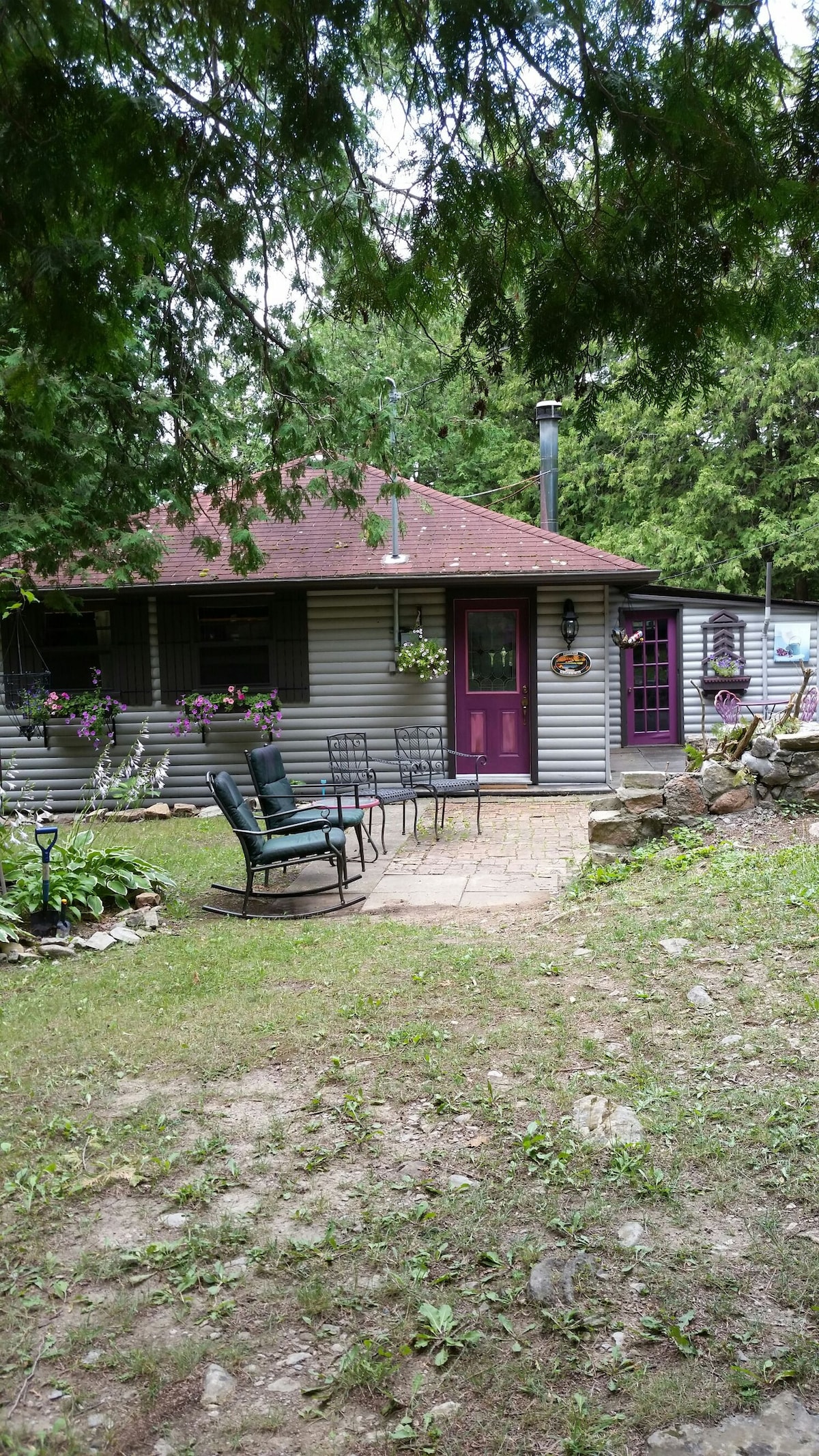 Mi casa de campo, caprichosa y pintoresca, está a 5 km de la ciudad, que alberga un Foodland, LCBO, pub, heladería y Home Hardware. Balsam Lake Provincial Park y Indian Point Provincial Park también están cerca. ¡Me encanta mi casa de campo por los jardines, las lámparas de araña, las puertas moradas y el glorioso río limpio! La casa en sí es de 900 pies cuadrados de ternura y la propiedad es de 100 x 200 pies cuadrados. Piragüismo, kayak, barbacoa, natación, esnórquel y flotación en el río son actividades diarias.