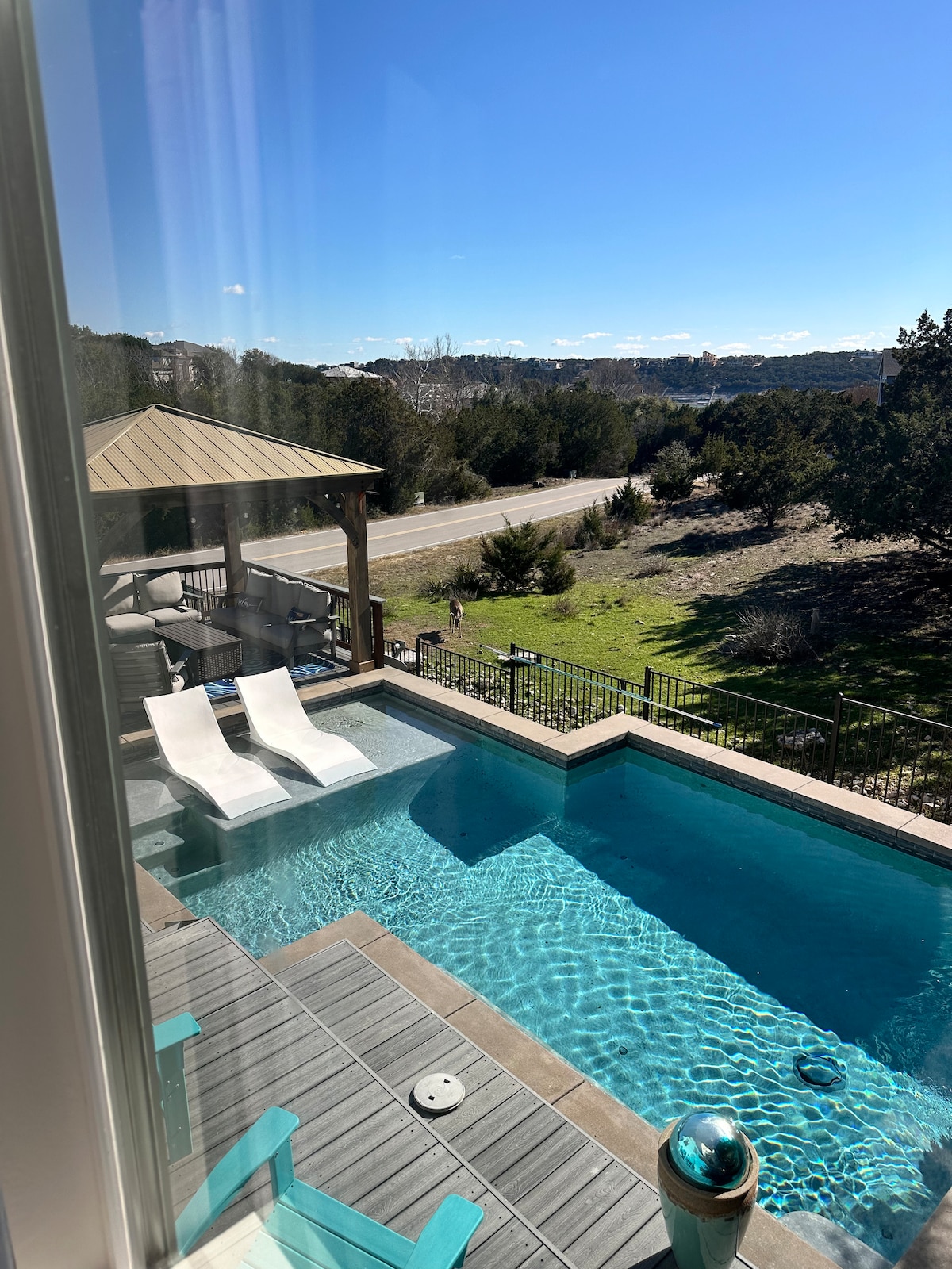 "My family had a truly great time here! Amenities A++. Beautiful and fun!" --Matan. Welcome to Lago Vista Vibe, a serene Texas Hill country getaway. Enjoy the elegant backyard and free heated pool with waterfall, cabana, and swim up bar. Perfect for families with kids, small groups and/or couples looking for a retreat. Adventurous? Enjoy scenic hiking, local craft beer, lakeside parks with boat ramps, fishing, picnic areas, wine tasting, golfing, views, and zipline adventures nearby.