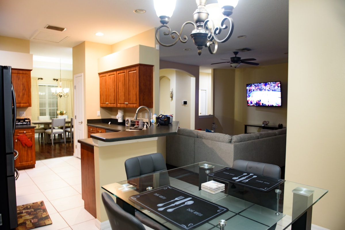 Propiedad de 1+ acre con 4 dormitorios y 3 baños completos, incluida una suite suegra. ¡Esto es perfecto para tu próxima escapada, incluyendo wifi de alta velocidad, dos televisores 4K de 55pulgadas con Netflix y todo lo que necesitas para tus vacaciones! Si deseas explorar, el alojamiento está en una ubicación ideal con acceso rápido a parques, universidades, aeropuertos y parques de atracciones.