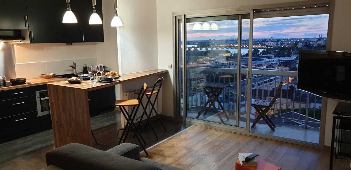 Lugar de vida con colores serenos: blanco y negro mezclados con lo natural de la madera en una zona animada cerca de la estación de tren (10 minutos), el tranvía (2 minutos), los muelles del Garona (3 minutos), el mercado muy colorido " des Capucins " y entre las iglesias de Sainte Croix y Saint Michel , con una vida artística activa ( Teatro ) y muchos lugares para relajarse: restaurantes y tiendas