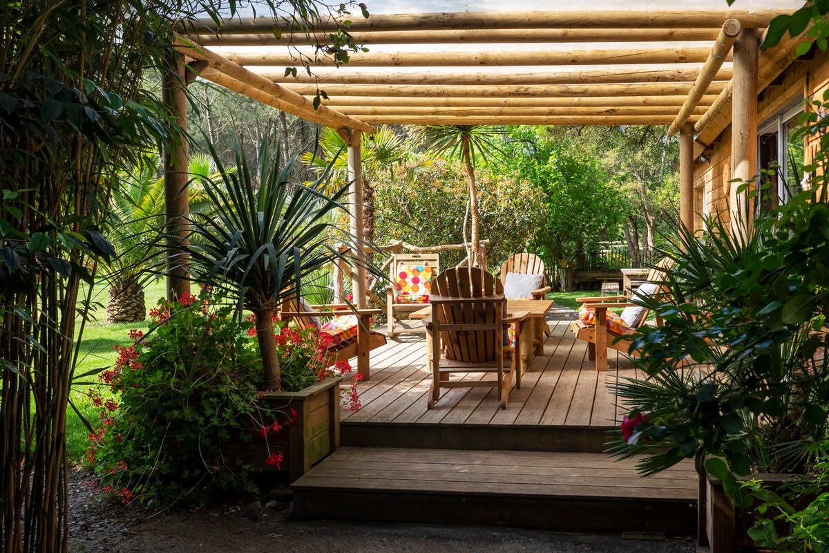 Cabaña landesa con terraza y jardín