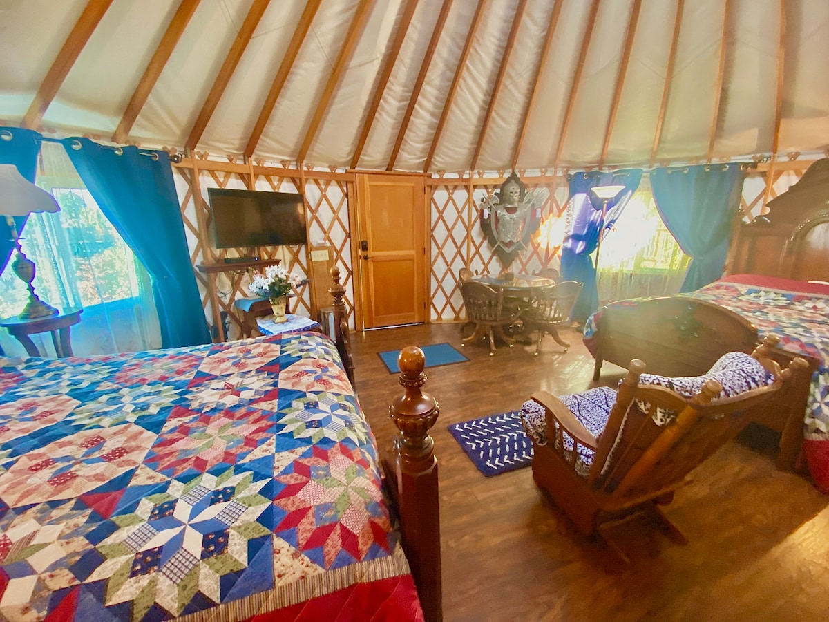 Mystical Rose es una yurta exterior de temática única, roja o terra cota. Tiene 24piesde diámetro con aire acondicionado fresco y calor caliente de su propia bomba de calor. Disfruta de una selección gratuita de café y artículos de desayuno de autoservicio. Está cerca de restaurantes, excelentes bodegas cerca y salas de degustación, todas con vistas, etc. Te va a encantar mi alojamiento por el tema de las yurtas, para citar a varias personas "WOW". Formo parte de Yurtel-Veneta, un bed and breakfast de 3 yurtas.