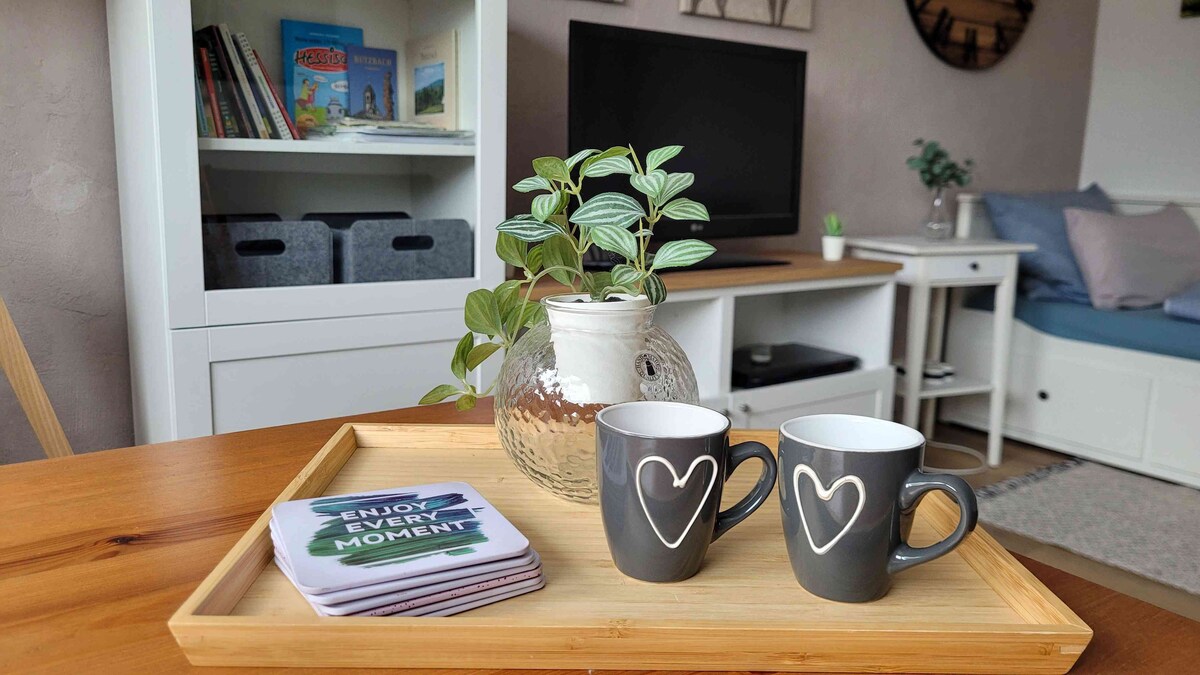 Genießen Sie Ihre Zeit in unserer stil- und liebevoll eingerichteten Ferienwohnung. Unsere Wohnung verfügt über einen offenen Wohn-/Essbereich mit Kochnische, einen abgetrennten Schlafraum und ein Badezimmer mit Dusche. Die Kochnische ist ausgestattet mit Geschirrspüler, Herd, Kühlschrank (+Eisfach) sowie einer Kaffeemaschine. Im Schlafzimmer finden Sie ein bequemes Doppelbett 140cm und einen Kleiderschrank vor. Ein weiterer Schlafplatz steht Ihnen auf der Schlafcouch zur Verfügung.