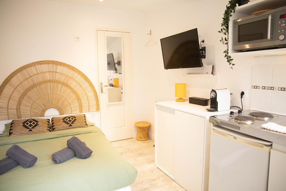 Disfrute de nuestro encantador estudio con sus pequeñas vistas al mar a menos de 1000 m de la playa. Cerca de tiendas (panadería, pizzería, supermercado, bar...) Completamente renovado en 2022 - 2023, dispone de: - una sala de estar con sofá cama (colchón real) y TV conectada (Ambilight) con aplicaciones (wifi - Fibra) - una cocina super equipada, máquina Nespresso, tostadora, microondas - una ducha a ras de suelo con columna de ducha - Un balcón con vistas abiertas
