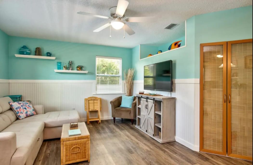 Nuestra casa está muy bien actualizada, totalmente amueblada y decorada con un tema de playa. El dormitorio principal tiene una cómoda cama tamaño king y el segundo dormitorio tiene una cama tamaño queen. Tenemos un hermoso estanque en la parte trasera. Perfecto para relajarte y hacer barbacoas mientras disfrutas de nuestro maravilloso clima de Florida. La casa tiene Smart TV, internet con wifi, lavavajillas, lavadora, secadora y mucho más. Todo lo que necesitas para que tu estancia sea perfecta. Estamos cerca de excelentes tiendas, restaurantes y de algunas de las mejores playas de Florida.