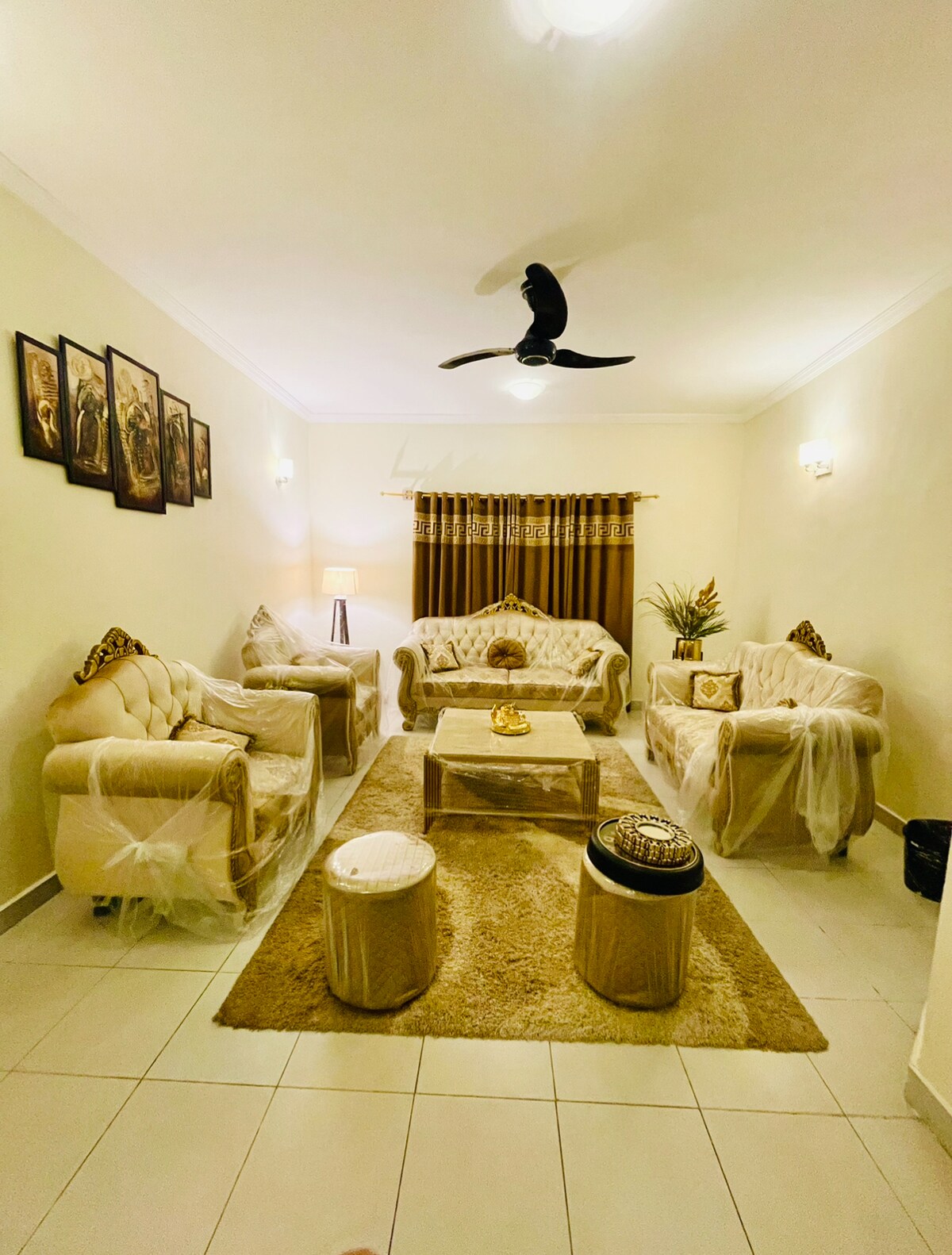 Departamento de lujo de 3 dormitorios con interiores modernos y comodidades de primera calidad. Las 3 habitaciones están totalmente climatizadas, cuentan con muebles elegantes y ropa de cama acogedora. El amplio salón está totalmente climatizado para ofrecer el máximo confort y relajación. Cuarta habitación adicional disponible (sin aire acondicionado), apta para almacenamiento o uso flexible. Ideal para familias y viajeros de negocios que buscan una experiencia de alojamiento limpia, tranquila y de primera calidad. Reglas de la casa estrictas: no se permiten PAREJAS NO CASADAS, BEBIDAS ALCOHÓLICAS, DROGAS ni FIESTAS JAZAKALLAH KHAIR.