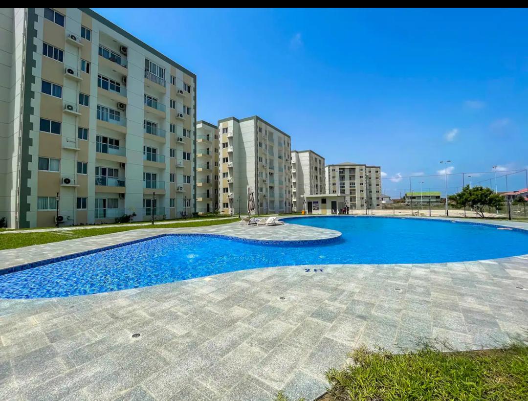 Bienvenido al elegante departamento de 2 dormitorios y 2 baños en la codiciada comunidad cerrada con seguridad 24/7. Ya sea que busques explorar las emocionantes atracciones de Lashibi, Sakumono y Accra, pasar el día en la playa o probar la cocina local, esta ubicación privilegiada proporciona el punto de partida perfecto para las aventuras. ✔ 2 cómodas habitaciones tamaño queen Sala de estar ✔ relajante ✔ Cocina totalmente equipada ✔ Balcón privado TV ✔ inteligente ✔ Wifi ✔ Servicios comunitarios (piscina, jardines, seguridad) ✔ Estacionamiento ¡Ver más a continuación!