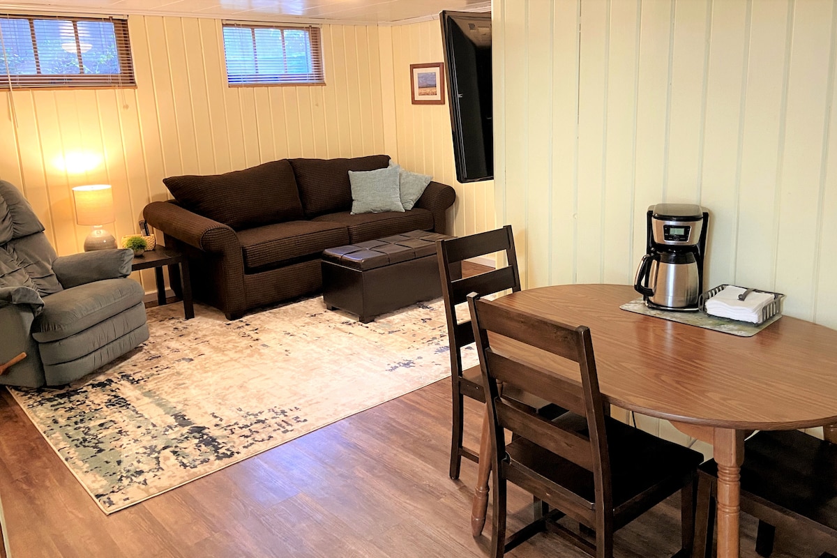 ¡Todas las comodidades en una suite familiar de 1 dormitorio y 1 baño! Entrada independiente de la casa principal y tu propia plaza de aparcamiento en la entrada. Situado en una calle sin salida tranquila, pero a poca distancia a pie de parques. A 5 minutos en coche del centro de la ciudad. Cocina pequeña, mesa grande, sofá cómodo, escritorios para estaciones de trabajo, así como internet rápido de 200 mb, hacen de este el lugar perfecto para lo que sea que tu viaje pueda contener.