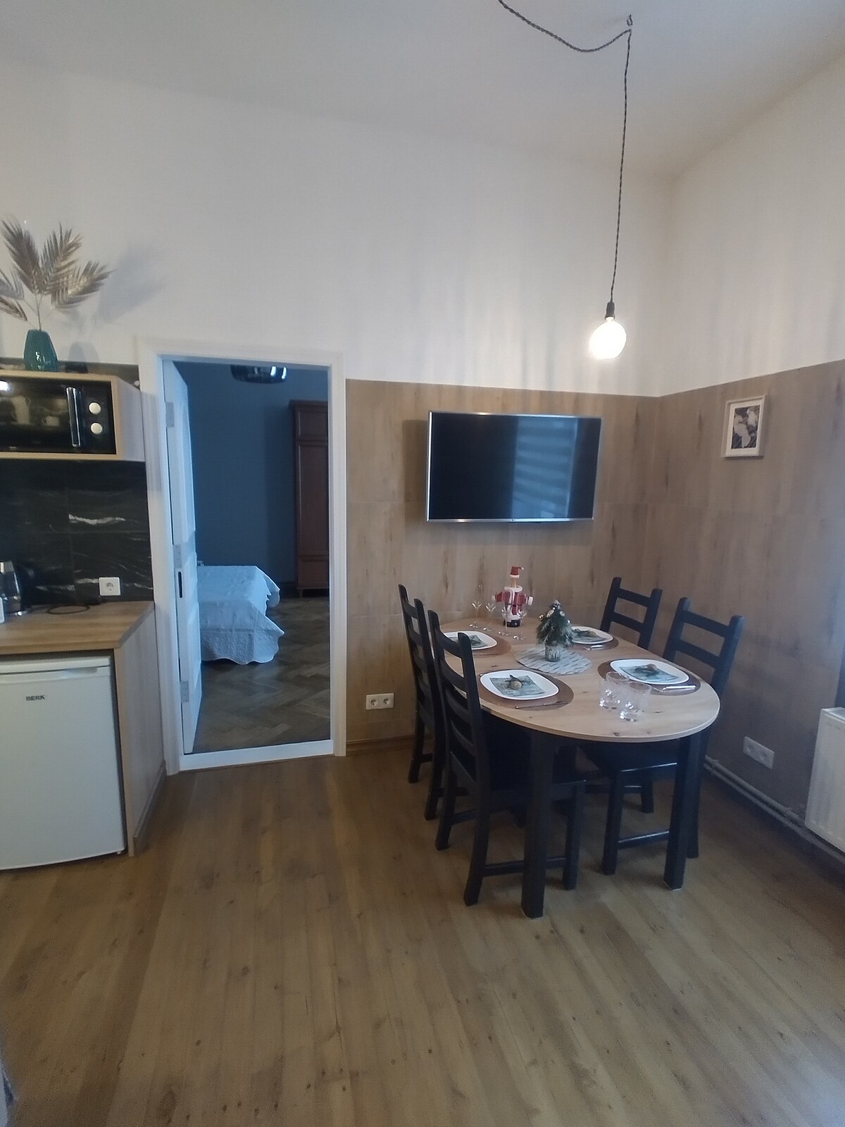 Disfruta de una estancia elegante y tranquila en el corazón de la ciudad. Un departamento con balcón, ubicado en un edificio restaurado para una comodidad de alto nivel. Los apartamentos están ubicados cerca del casco antiguo y del parque Verman y tienen acceso a un patio tranquilo que te permite disfrutar de paz y tranquilidad mientras estás en el centro de la ciudad. El departamento tiene 55 metros cuadrados, tiene un dormitorio separado, una sala de estar con cocina y un baño con cabina de ducha. El departamento cuenta con todo lo necesario para la experiencia.