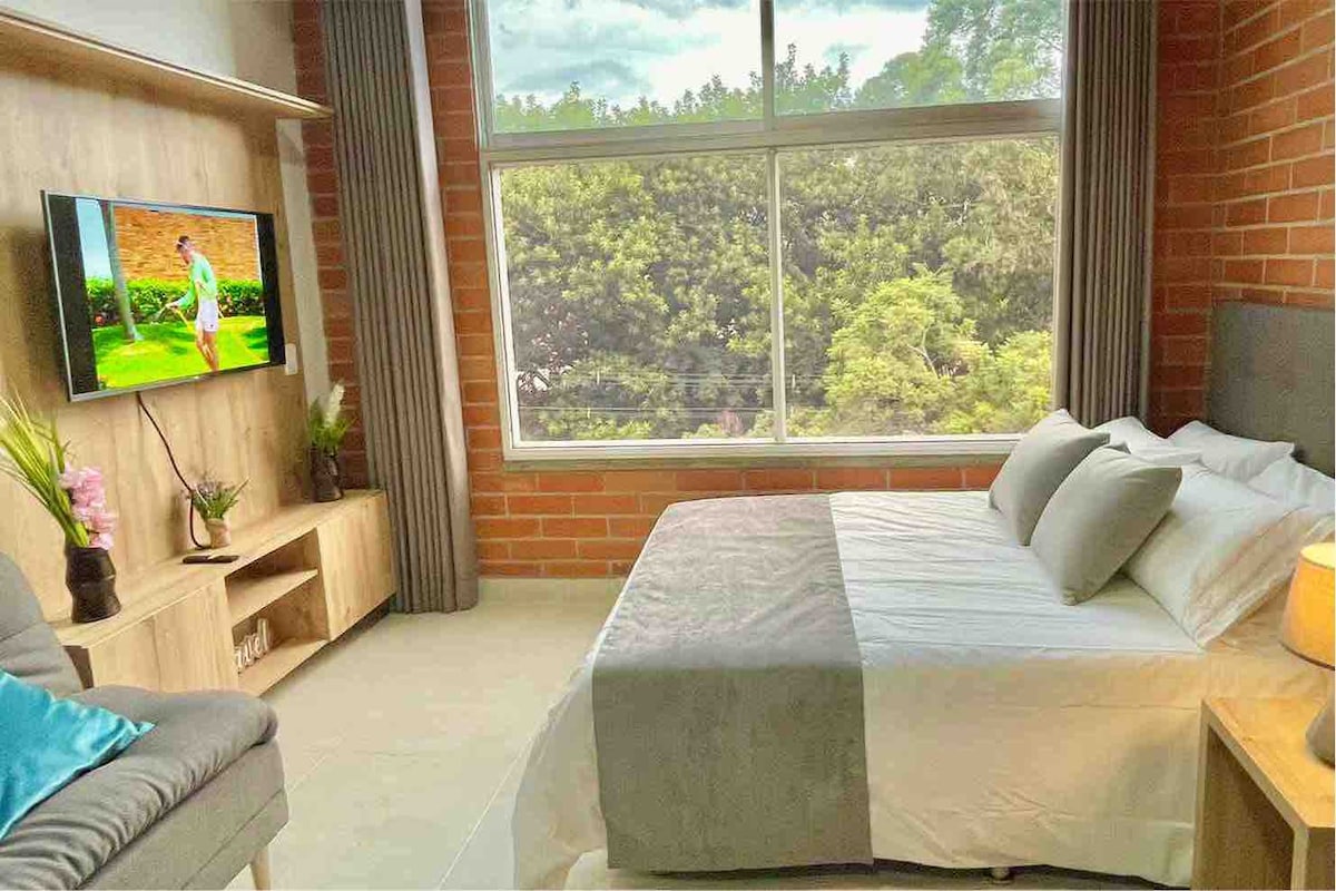 Moderno apartamento tipo loft que cuenta con aire acondicionado, cama doble, baño, vestier y sofá cama. deal para disfrutar solo, en pareja o para familias pequeñas. Ubicado en el barrio Laureles de Medellín, a 2 minutos del Centro comercial Unicentro, Universidad Pontificia Bolivariana (UPB) y Avenida Nutibara. A 3 minutos de la Avenida Jardín y del Pueblito Paisa. A 5 minutos de la avenida 70. A 10 minutos del Estadio Atanasio Girardot y 15 minutos del Parque Lleras, Manila y Provenza.