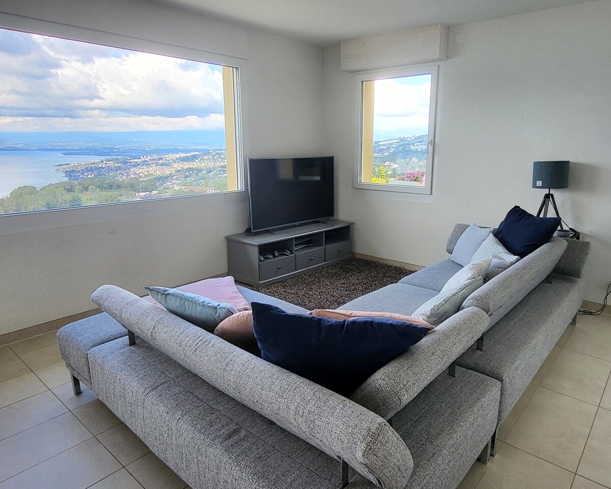 Departamento de 3 dormitorios con impresionantes vistas al lago cerca de Lausana. Disfruta de las playas locales y los viñedos del patrimonio de la UNESCO, además de impresionantes puestas de sol desde nuestra habitación principal o balcones al aire libre. Nuestro alojamiento cuenta con: - 2 dormitorios dobles (uno con cama doble y el otro con un sofá cama doble). - 1 habitación con literas para 2 niños. Fácil acceso a los Alpes y a la vecina Francia; a 15 minutos caminando de la estación de tren; a 10 minutos caminando del autobús. Como solemos vivir aquí, nuestra casa está totalmente equipada para familias/parejas.