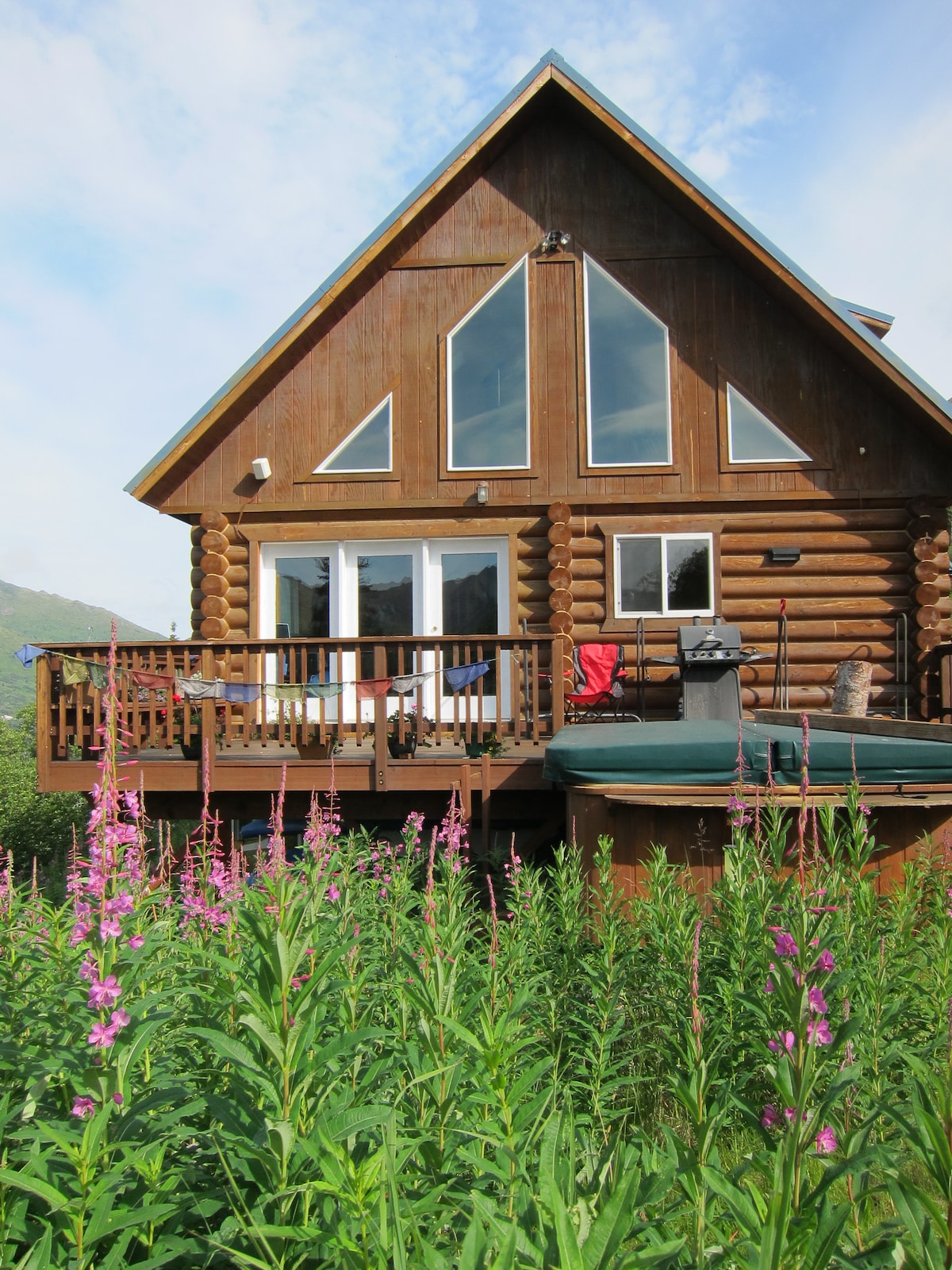 Escápate a un hermoso refugio de Alaska ubicado en un acantilado con vistas a las majestuosas montañas Talkeetna. Esta propiedad de 2 acres cuenta con una gran terraza con jacuzzi para 4 personas y chimenea, perfecta para relajarse al final del día. Hay dos cómodas habitaciones, cada una equipada con su propio televisor, y un baño tipo spa para relajarse. Hay lavadora y secadora, por lo que tendrás todas las comodidades de tu propio hogar. Ubicado cerca de lugares recreativos al aire libre como Hatcher Pass, este lugar es ideal para todos.