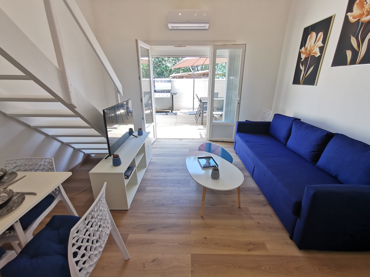 Encantadora casa señorial cerca de los viñedos y a 30 minutos del mar. 🚶♂️ Estás a 8 minutos a pie de las tiendas de proximidad: tienda de comestibles, panadería, tabaco, restaurante, peluquería... La casa tiene capacidad para 6 personas con todas las comodidades necesarias. 🌿 Opcionalmente, un ecolodge independiente de madera (Domo) en el jardín tiene capacidad para 2 personas adicionales (capacidad total: 8 personas), previa reserva y con suplemento. Las dos viviendas nunca se alquilan al mismo tiempo.