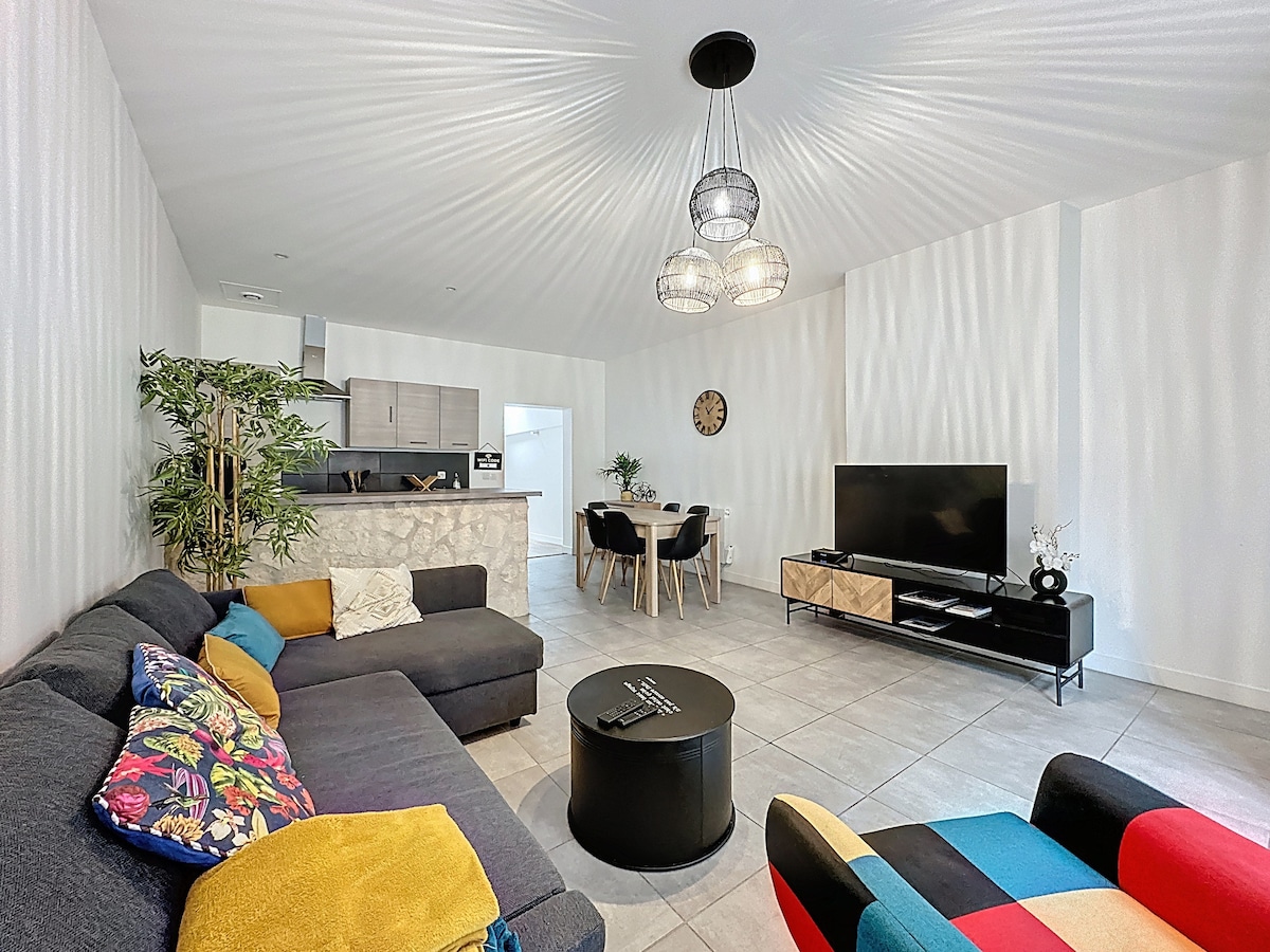 EL PARÉNTESIS es un apartamento de 50 m2 reformado con un gusto cuidado idealmente situado muy cerca del jardín de las plantas y de todas las comodidades adecuado para sus estancias pequeñas y largas Nuestro apartamento es perfecto para parejas,colegas,familias (con personas sin hijos) EL PARÉNTESIS se encuentra en el segundo piso de una residencia tranquila de cuatro plantas con ascensor Estamos equipados con internet de alta velocidad y wifi 6 y acceso gratuito a Netflix