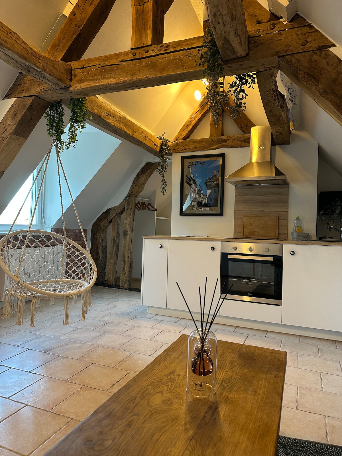Le Cocon Suspendu - Estudio con encanto en el corazón de Pont-Audemer Bienvenido al Cocon Suspendu, un estudio ubicado bajo los tejados de Pont-Audemer, también llamada la Venecia Normanda. Este pequeño nido acogedor le ofrece un paréntesis cálido, entre la autenticidad rústica y la comodidad moderna, a dos pasos de la calle principal y de todas las comodidades. ¡Reserve su estadía en el Cocon Suspendu, y venga a descubrir toda la dulzura de la vida normanda! Limpieza incluida, sin cargos ocultos.