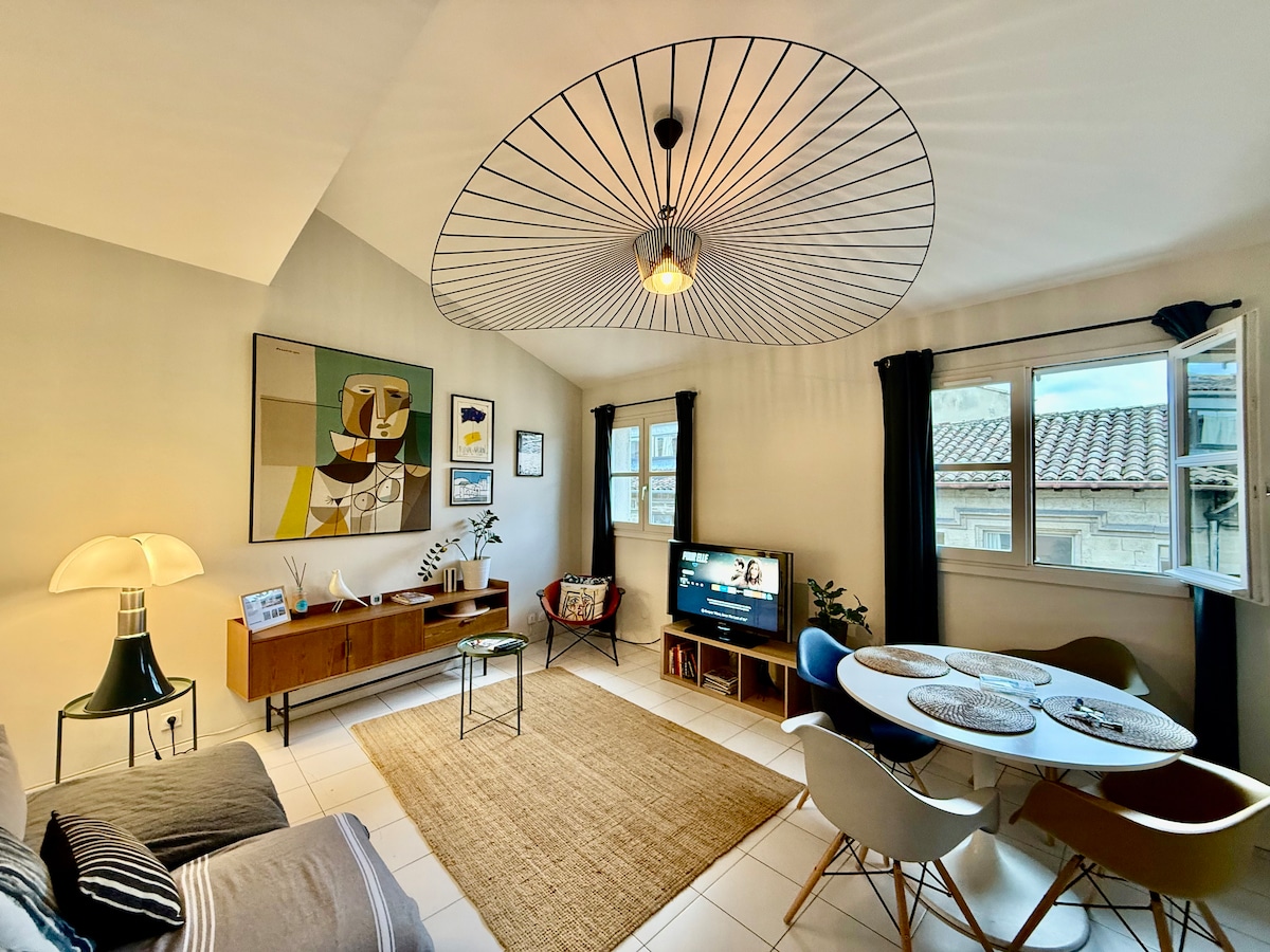 Este acogedor apartamento de 40 m2, recientemente renovado con mucho gusto donde se mezclan piedra y madera, para un ambiente cálido, en una antigua dependencia del Palacio de los Papas y revive este período histórico de la ciudad de Aviñón. Con una ubicación ideal en pleno centro de Aviñón, junto al Museo Jean Vilar, la plaza del reloj (🚸en zona peatonal). Llegada y salida independientes. Check-in 17:00 / check-out 10:00. El apartamento está situado en el segundo piso de un edificio que consta de 5 viviendas (⚠️sin ascensor).