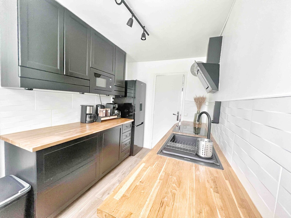 Bonito apartamento renovado por completo en 2022, moderno y acogedor situado en el centro de la ciudad de Gonesse y cerca de todos los servicios (panadería, bancos, estanco, tienda de comestibles, pizzería...) con capacidad para 4 personas como máximo. Nuestro alojamiento está situado en el primer piso en una antigua granja totalmente renovada. Ideal para profesionales en viaje de negocios, parejas o amigos que deseen pasar una estancia agradable en un lugar tranquilo y silencioso.