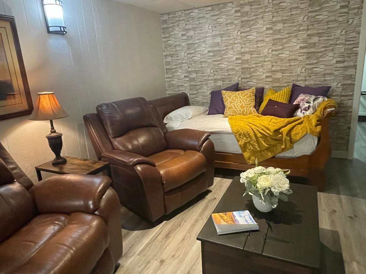 A estrenar, limpio y espacioso. Este apartamento de nivel inferior es un excelente lugar para un viaje de negocios corto o para una visita más larga. Es excelente para un viajero solo, parejas y familias de vacaciones. Tiene un hermoso dormitorio espacioso con una cama tamaño queen. Baño luminoso para todas tus 🤳 selfies y lavandería en la suite. Hay un colchón de espuma tamaño queen y un colchón inflable disponible para dormir más.