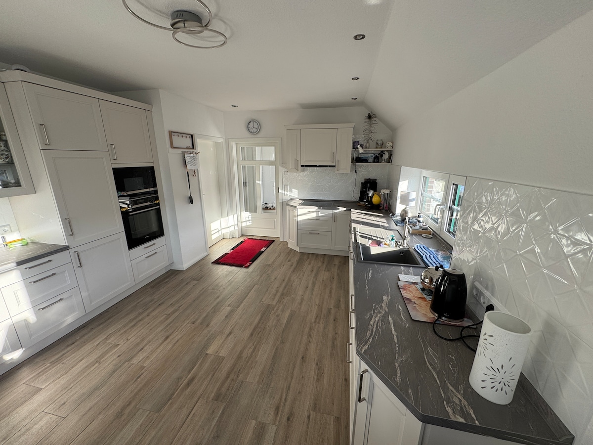 En medio de los hermosos prados y la vista idílica se puede disfrutar de la paz "pura" en la pequeña casa de hierba Tjücher. Ofrece un jardín verde con vistas panorámicas al campo y a los campos, por lo que se puede disfrutar de una taza de café en la terraza con total tranquilidad. La casa está completamente vaciada, restaurada y reformada según los estándares más modernos. Le espera una sala de estar y comedor llena de luz con cocina, dormitorio, habitación infantil y baño. Wifi de alta velocidad, aparcamiento privado.
