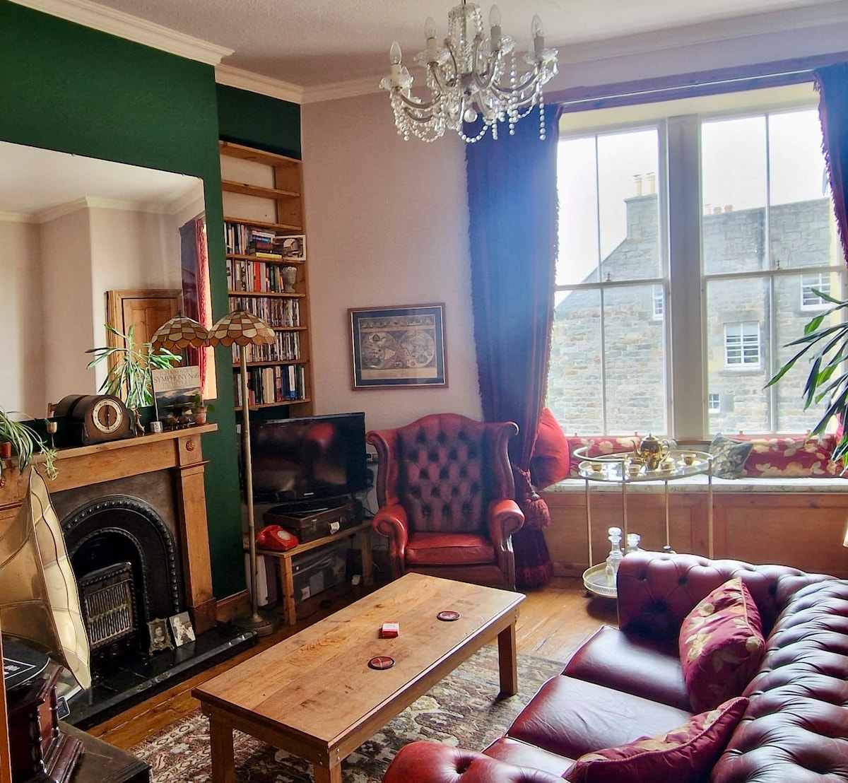 Elegante y cómodo apartamento en el segundo piso en una casa adosada victoriana tradicional, en la frondosa zona de Abbeyhill de Edimburgo, propiedad de un artista escocés. El departamento tiene una ubicación ideal, en una calle tranquila pero cerca del corazón de la ciudad. A pocos pasos de la Royal Mile, el Palacio y el Parque Holyrood, Calton Hill, el Parlamento escocés y el casco antiguo. Desayuno ligero incluido en el costo: croissants/mermelada, café, té y leche. Muchas tiendas, cafés, pubs y parques cerca.