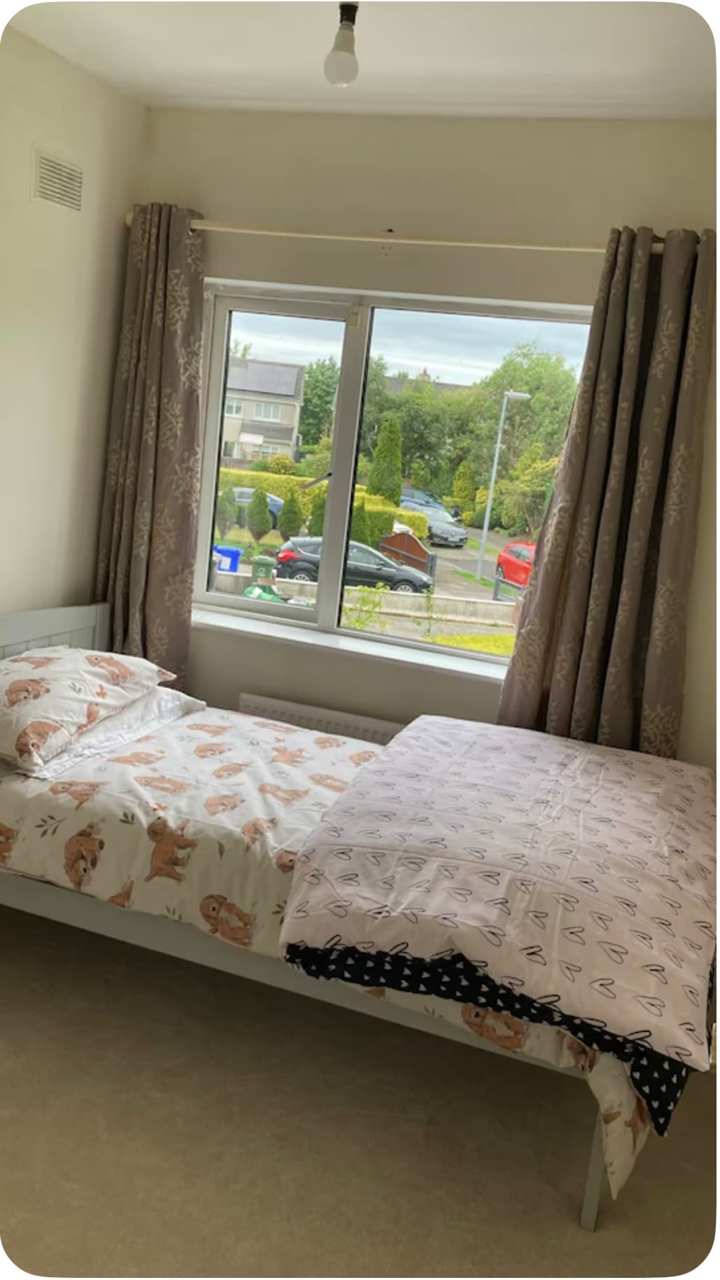 Relájate con toda la familia en este alojamiento tranquilo. Situado en una zona residencial segura y tranquila. A 15 minutos en coche del aeropuerto de Dublín y a 30 minutos del centro de la ciudad. El servicio de autobús las 24 horas está a solo unos pasos. Cerca del centro comercial más grande de Dublín, Blanchardstown, así como del parque urbano más grande de Europa, Phoenix Park, donde puedes alimentar a ciervos salvajes y visitar el zoológico de Dublín. Los huéspedes pueden cocinar en la cocina totalmente equipada. Navega con wifi de alta velocidad. Tendrás una estancia inolvidable en Dublín.