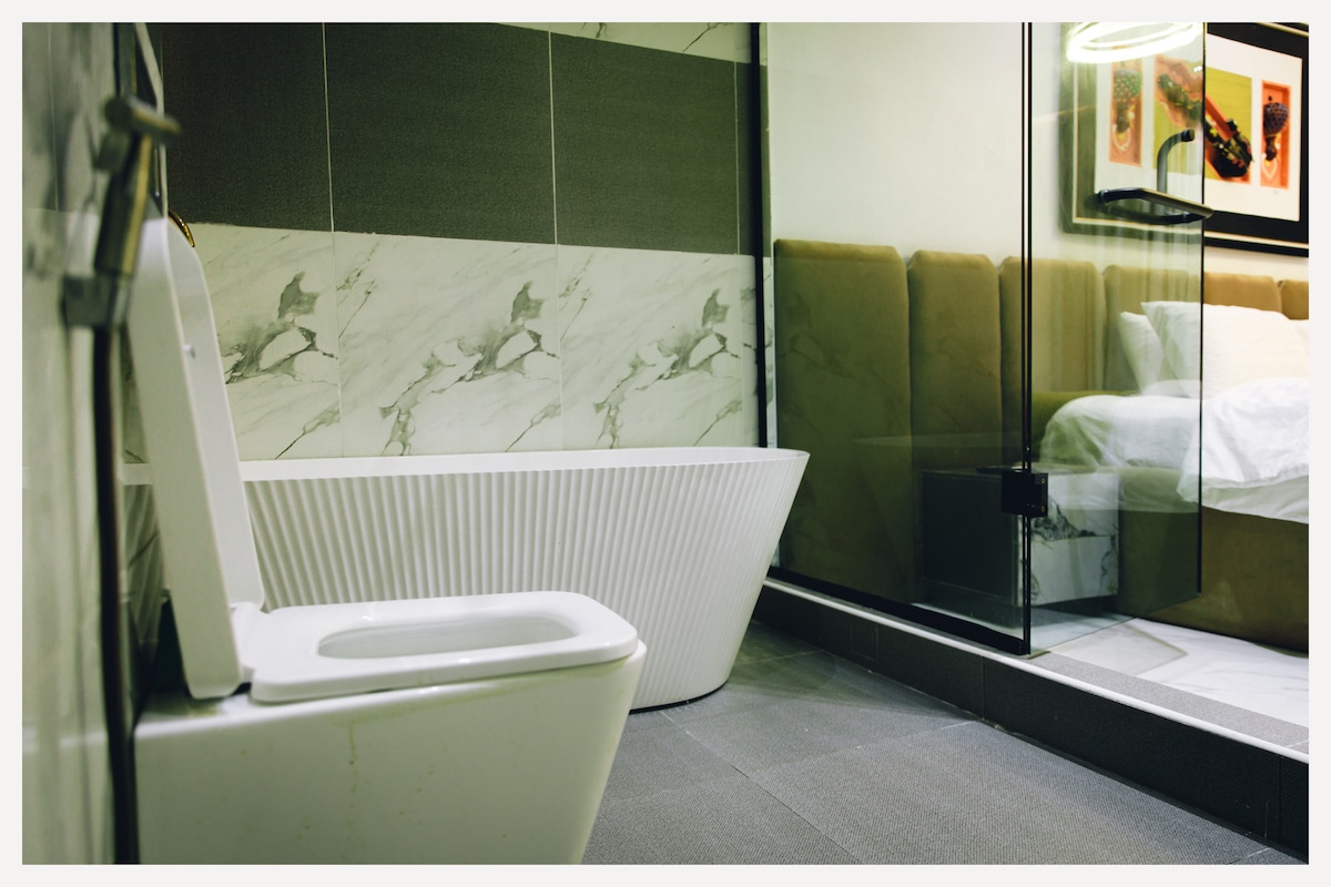24/7 power, Wifi. This mini flat was created to give you a quiet, private place where everything slows down the moment you walk in. No clutter. No noise. Just a clean, thoughtfully designed space where you can rest, think, work, or simply disappear for a while. Inside, you’ll find a cosy living room with a large smart TV, warm lighting, and comfortable seating for movie nights. The bedroom is designed for deep rest — with blackout curtains, and a calm atmosphere that makes sleep come easily.