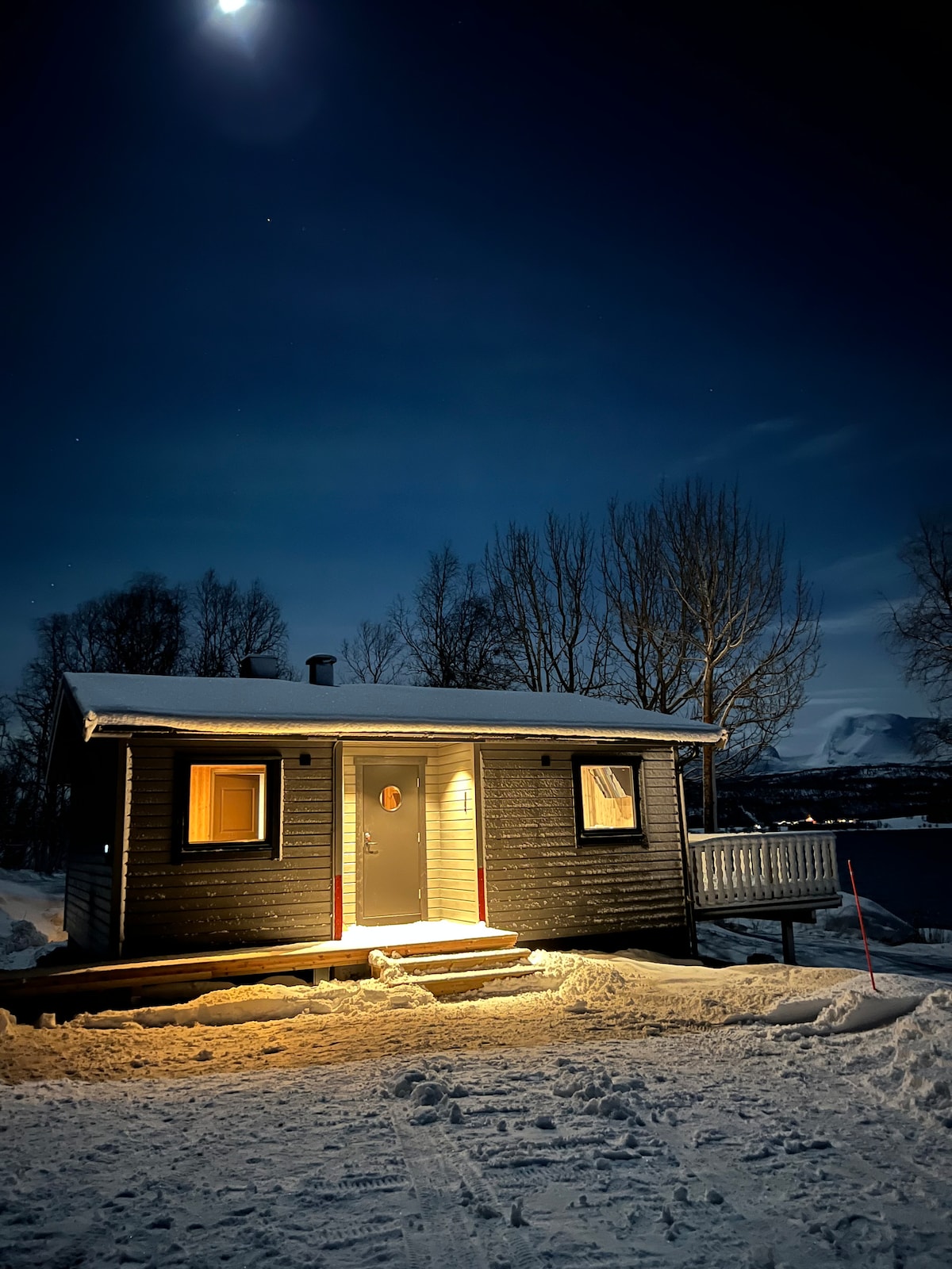 Esta pequeña casa de huéspedes tiene la vista más hermosa directamente desde la cocina y la ventana del dormitorio. Dado que no hay farolas alrededor, es el lugar perfecto para observar la Aurora y disfrutar de una escapada privada relajante en el Ártico. Vivimos al lado con nuestro hijo de 6 años y nuestro gato. Estamos en el trabajo desde las 8:00 están en casa desde aproximadamente las 4:30p. m. y los fines de semana. Servicios en las instalaciones: Carga de vehículos eléctricos 400 kr/Traslado privado 500 kr/Jacuzzi 1200 kr o 100 € por 2 días/Sauna 500 kr o 40 EUR por uso (solo en efectivo)
