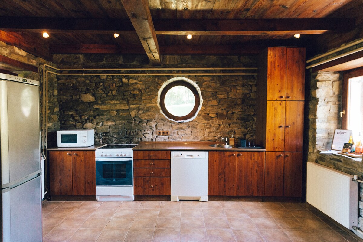 Casa de huéspedes junto al bosque • gran terraza • jacuzzi • panorama SUQO es el lugar perfecto para relajarse un poco, descansar, estar contigo mismo y con tus pensamientos, ya sea con tu pareja, familia o amigos. Con su colorido interior, SUQO se alejó de la monotonía de la vida cotidiana y el bosque junto a la casa le recargó las pilas sin que se diera cuenta.