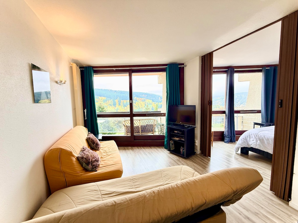 Paréntesis encantado con acogedor salón, gran ventanal y vistas a la naturaleza. Disfrute de una cocina totalmente equipada, un relajante baño con bañera y un acogedor dormitorio con cómodas camas. Se proporcionan sábanas y toallas para viajar ligero. A dos pasos de las pistas, senderos y tiendas, todo está reunido para una escapada que combina comodidad y naturaleza. ¿Necesita respirar? Deje sus maletas, respire... y deje que la montaña haga el resto.