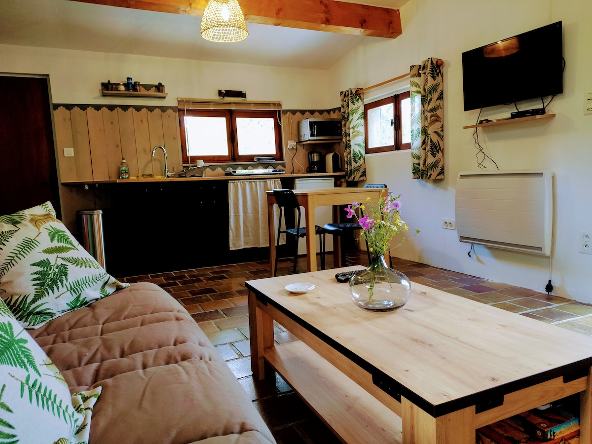 Pequeña cabaña en el bosque encaramada en los árboles, con todas las comodidades, para dos personas, sin vecinos, en una propiedad de 13 hectáreas cerca del Gran Cañón del Verdon a unos 1,5 km del pueblo. Una hermosa terraza grande, la naturaleza, los pájaros, la paz. La cama lista a la llegada , toallas. En el pueblo todas las comodidades . Actividades, escalada, barranquismo, senderismo, baño en el lago Sainte Croix. Gastos de limpieza incluidos. El desayuno no está incluido.