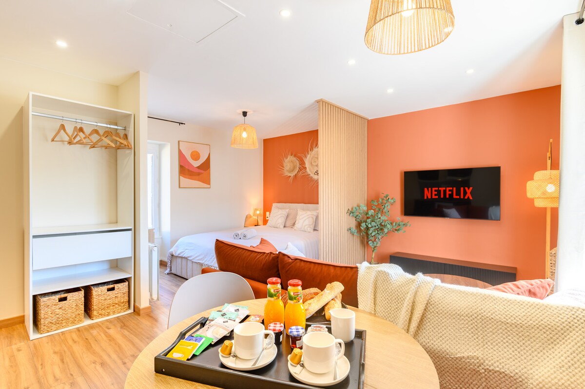 Le damos la bienvenida a un estudio de 18 m² en la planta baja de nuestra casa con entrada independiente. Ideal para viajes de negocios, formación o una parada para descubrir la Vendée. Estamos a 3 minutos del CHD y a 5 minutos de la Clínica St Charles, la escuela de enfermería, el IUT. Consultorio de reflexología plantar en el lugar. Cerca de las tiendas, el centro de la ciudad, situado a 10 minutos de la estación de tren, a 35 minutos de Les Sables d'Olonne, a 40 minutos de Le Puy du Fou. Aparcamiento gratuito delante del alojamiento.