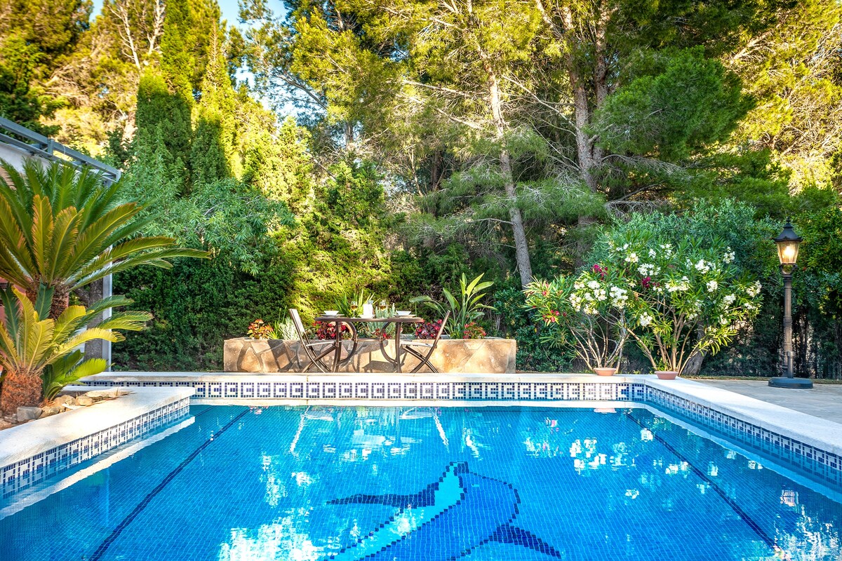 Encantadora villa jardín y piscina a 400 m del mar