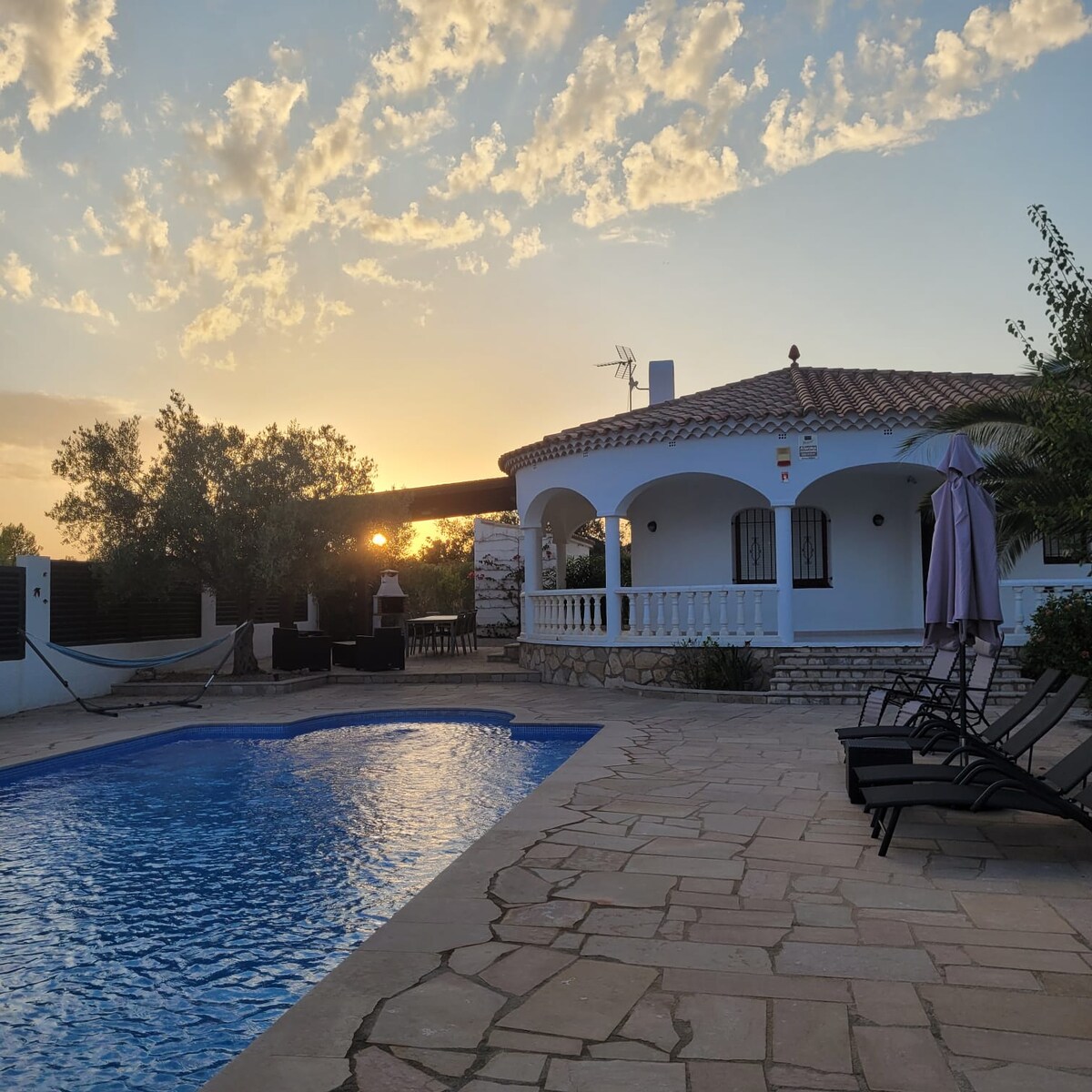 Villa muy acogedora y funcional para disfrutar de la tranquilidad, relajarse, y desconectar en familia o pareja. Casa independiente completamente vallada, con un gran jardín, zona de barbacoa y piscina de uso exclusivo. La casa está equipada con todo lo necesario y ofrece calma y privacidad. Ubicada en un gran entorno y cerca de las bonitas calas de l' Ametlla y del centro urbano.