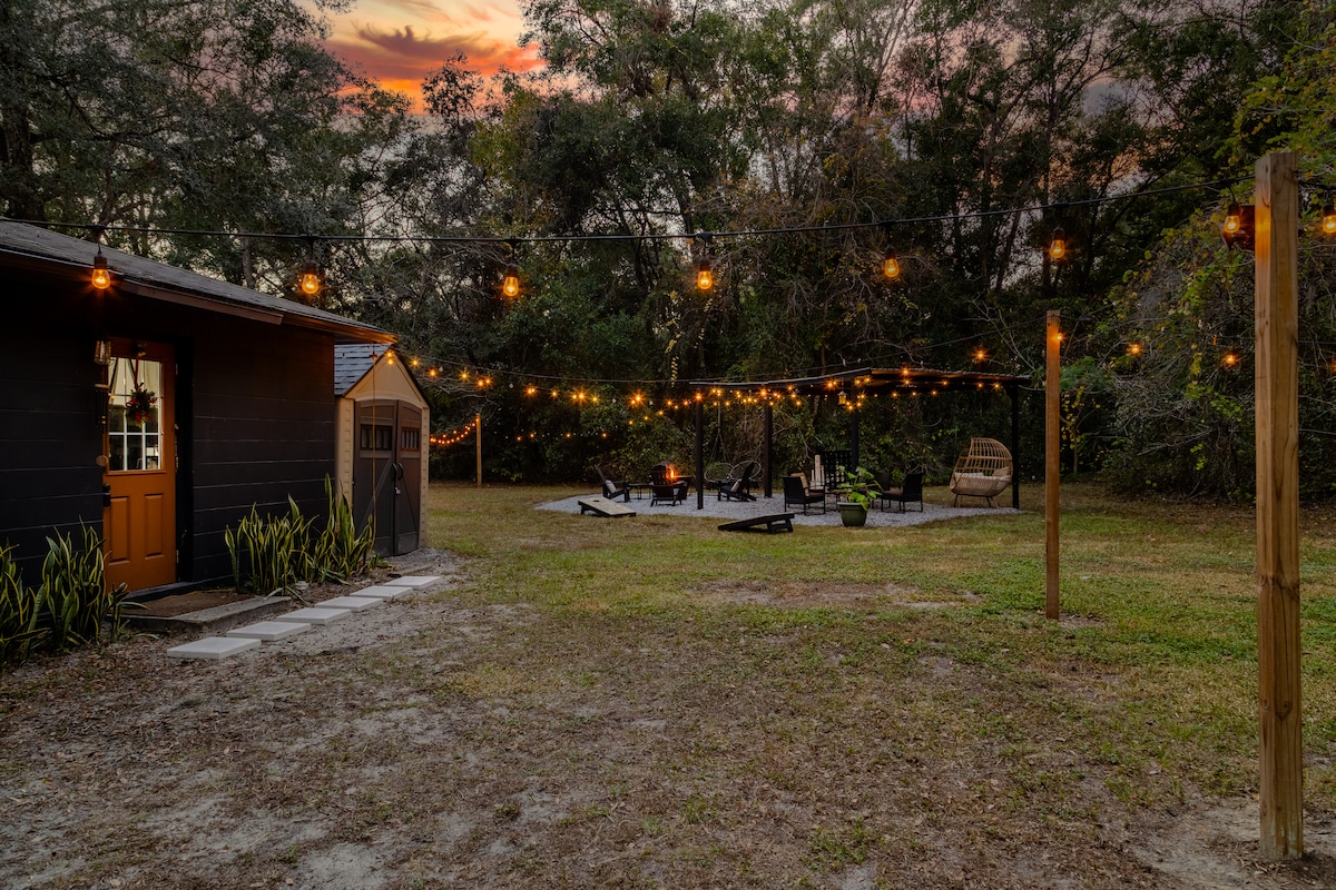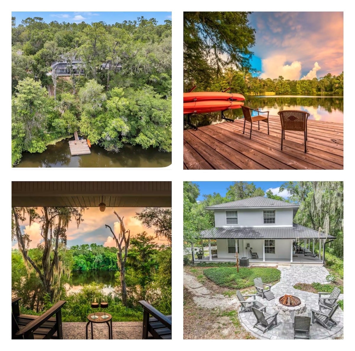 ☀Impresionantes puestas de sol en el lago Rousseau. ☀Disfruta del lago brillante, los sonidos de la naturaleza y las impresionantes vistas desde tu porche, muelle o chimenea. ☀Actividades: ¡Vale! Tal vez un poco de juego de bolas o fútbol en el césped bien cuidado si no estás demasiado hipnotizado por el sol que brilla en el agua, los pájaros que aterrizan en el lago o los muchos robles vivos de 300 años con musgo español que proporcionan sombra y luz solar filtrada. ☀Asa a la parrilla y luego termina el día con el atardecer, sonidos tranquilos y s'mores en tu hoguera.