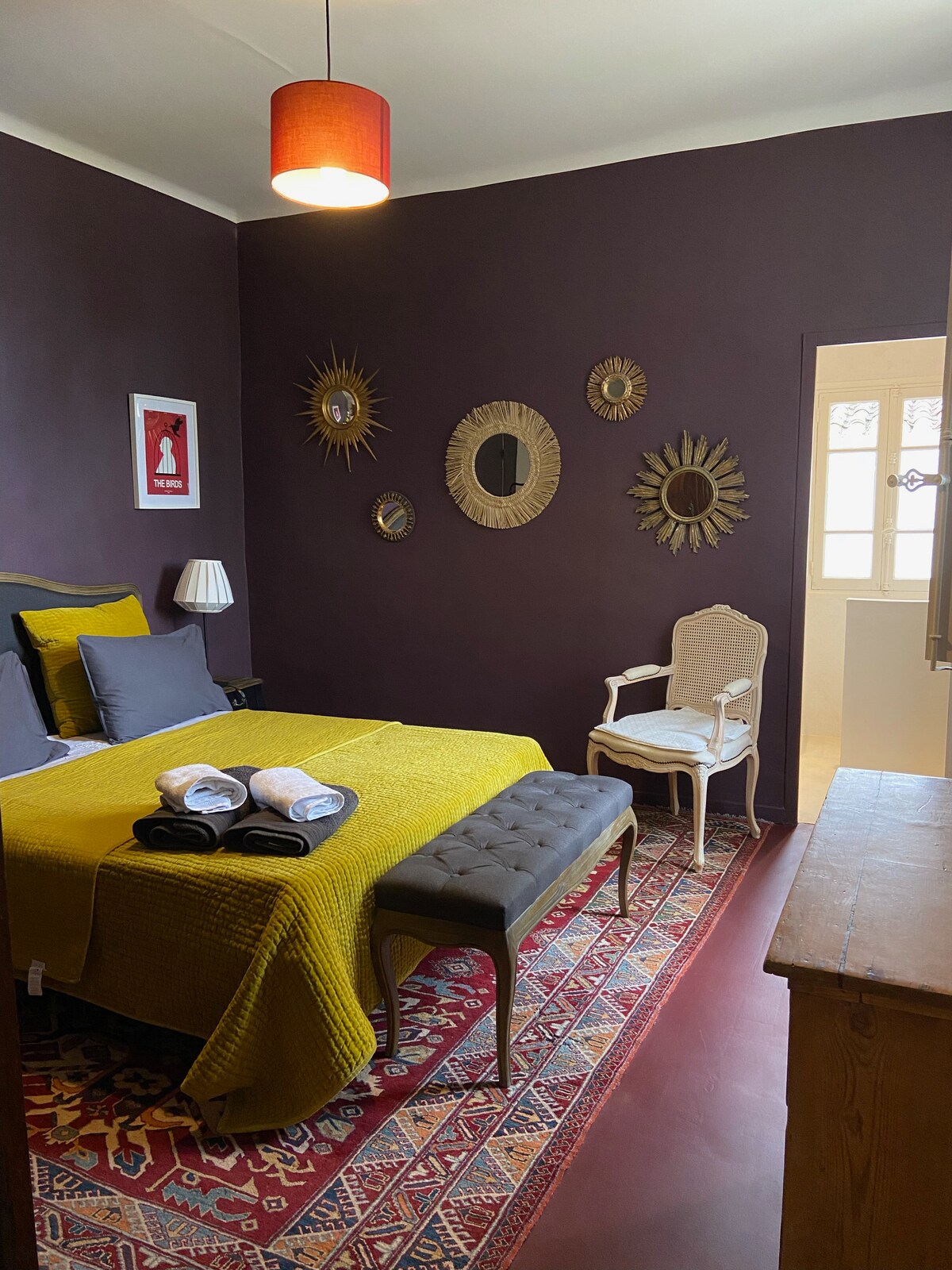 Este alojamiento de moda no le falta encanto es una habitación con una excelente ropa de cama en 160 . El lugar es muy tranquilo ,para una noche de descanso, baño con ducha italiana .Acceso a la cocina el desayuno está incluido en el precio Aparcamiento en frente de la casa.