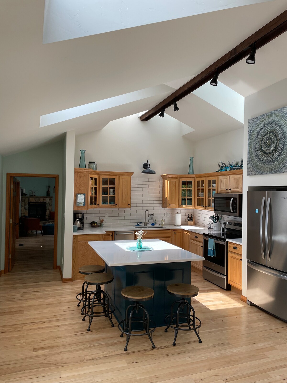 Cambia el ajetreo por la paz y la tranquilidad en nuestro acogedor refugio, a solo 5 minutos del corazón de Sister Bay. Escondida en 1,6 acres de bosques serenos llenos de hermosos hayas, la cabaña es tu lugar perfecto para una escapada. Relájate en la espaciosa terraza delantera, relájate en el porche protegido y disfruta de la belleza natural que te rodea. En el interior, el ambiente moderno de mediados de siglo se encuentra con comodidades acogedoras, con todo lo necesario para una estancia relajante y sin estrés.