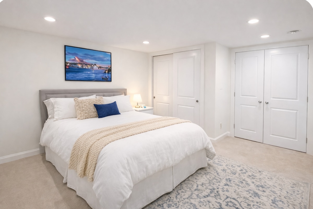 Apartamento privado en el sótano inglés con ventanas de tamaño completo y techos de 8 pies • Entrada privada delantera y trasera con entrada sin llave. • Patio exterior (espacio compartido). • 1 cama tamaño queen • Internet inalámbrico. • Smart TV con Netflix. • Cocina completa con cocina de gas • Máquina Nespresso y hervidor eléctrico. • Toallas y sábanas limpias para 4 personas • Lavadora/secadora. • 2 huéspedes es lo óptimo, pero un tercer huésped podría dormir en el sofá si lo desea.